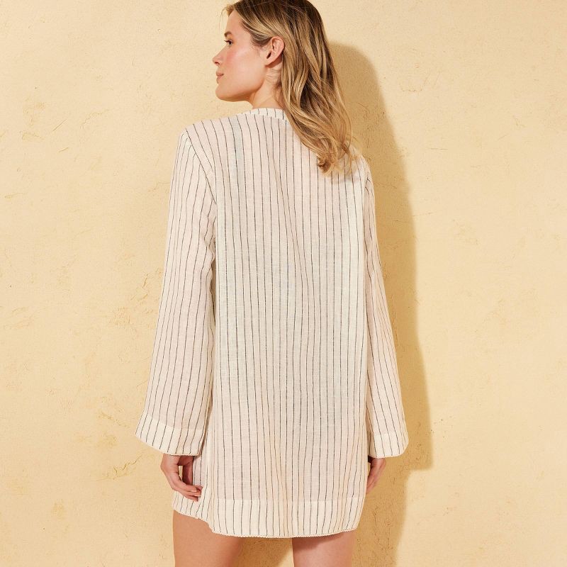 Elevate your sunny-day style with the Paula Tunic, a chic and easy coverup for beach or poolside days. Made from lightweight natural fibers, its long sleeves bring a touch of tailored coverage while k…