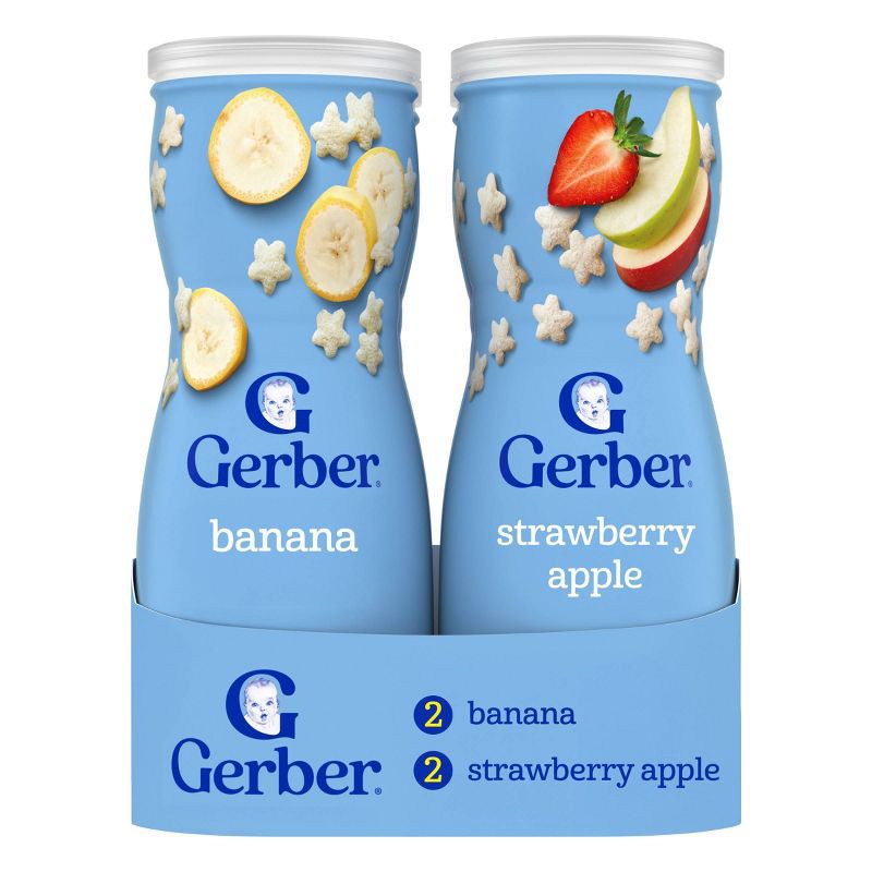 - BABY ESSENTIALS: Gerber Puffs baby snacks are thoughtfully crafted for busy parents who want to provide their little one with a nutritious on-the-go option. This baby snack variety pack comes with 2 banana and 2 strawberry apple puffs