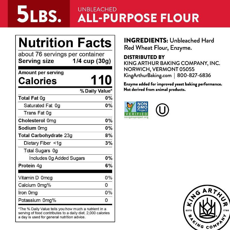- King Arthur All Purpose Unbleached Flour is Non-GMO Project Verified; Certified Kosher and has 11.7% protein content