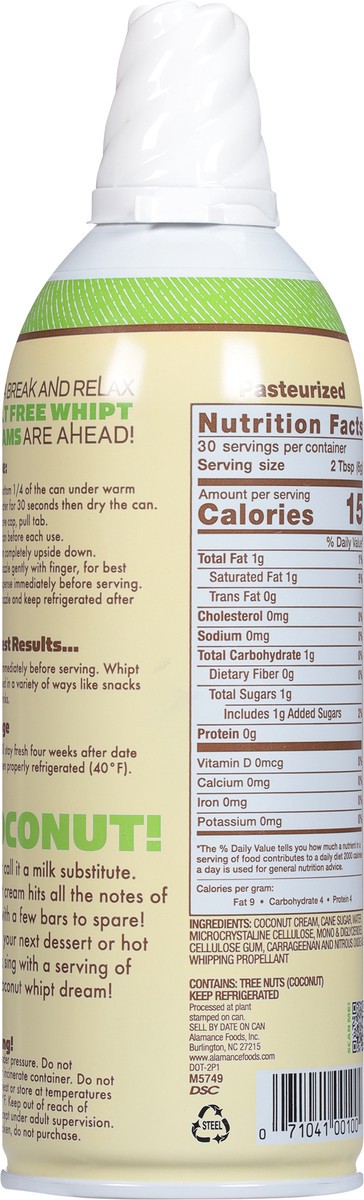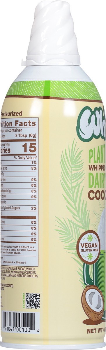 Coconut Cream, Cane Sugar, Water, Microcrystaline Cellulose, Mono & Diglycerides, Cellulose Gum, Carrageenan and Nitrous Oxide as Whipping Propellant.