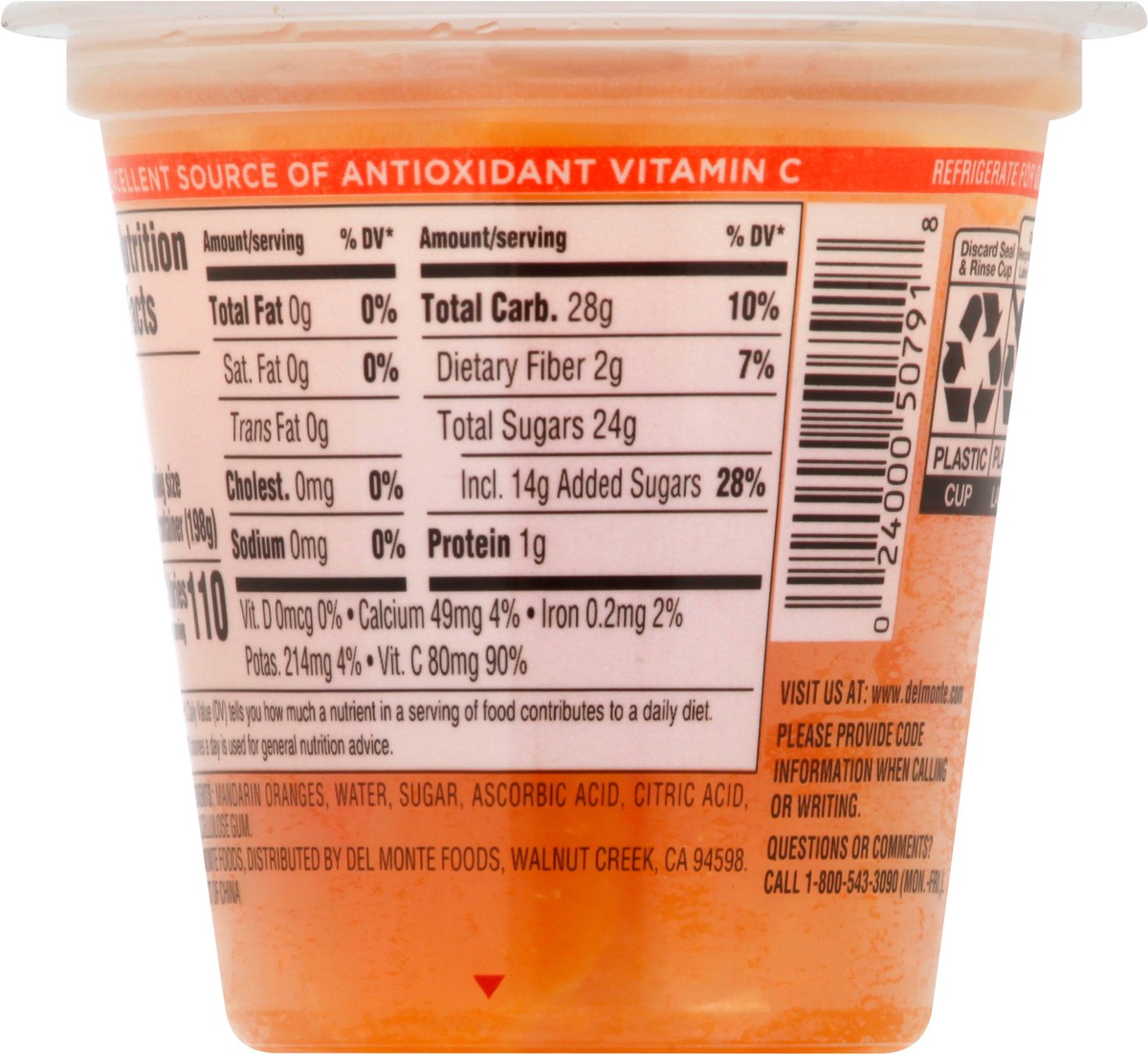 Del Monte Mandarin Oranges Fruit Cup Snacks, 7 oz Cup is packed with delicious wholesome mandarin oranges in extra light syrup for a snack you can feel good about. Del Monte Mandarin Oranges Fruit Cup…
