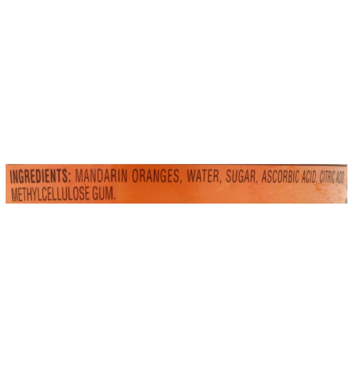 Mandarin Oranges, Water, Sugar, Ascorbic Acid, Citric Acid, Methylcellulose Gum.