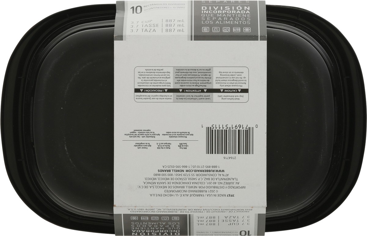 Rubbermaid TakeAlongs 3.7 Cup Divided Rectangles Containers & Lids 10 ea