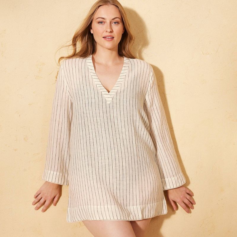 Elevate your sunny-day style with the Paula Tunic, a chic and easy coverup for beach or poolside days. Made from lightweight natural fibers, its long sleeves bring a touch of tailored coverage while k…