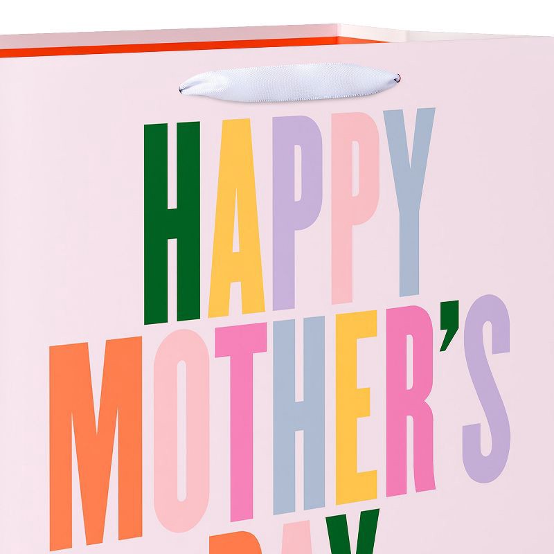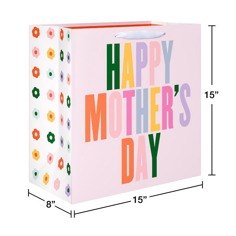 - DESIGN & FINISHINGS: This Mother's Day gift bag boasts vibrant, multicolored lettering with a playful array of pastel-colored flowers along the sides, perfect for adding a cheerful and loving touch to your gift.