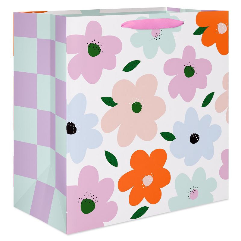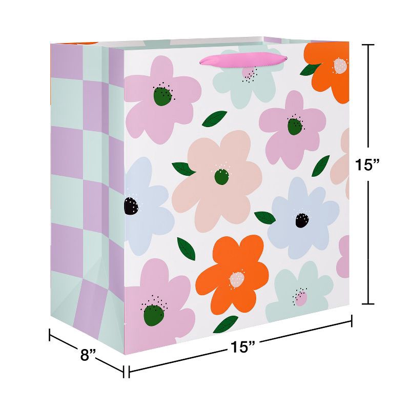 American Greetings Jumbo Mother's Day Gift Bag, Floral and Checkered 15"x15" Designed by Spaghetti and Meatballs
