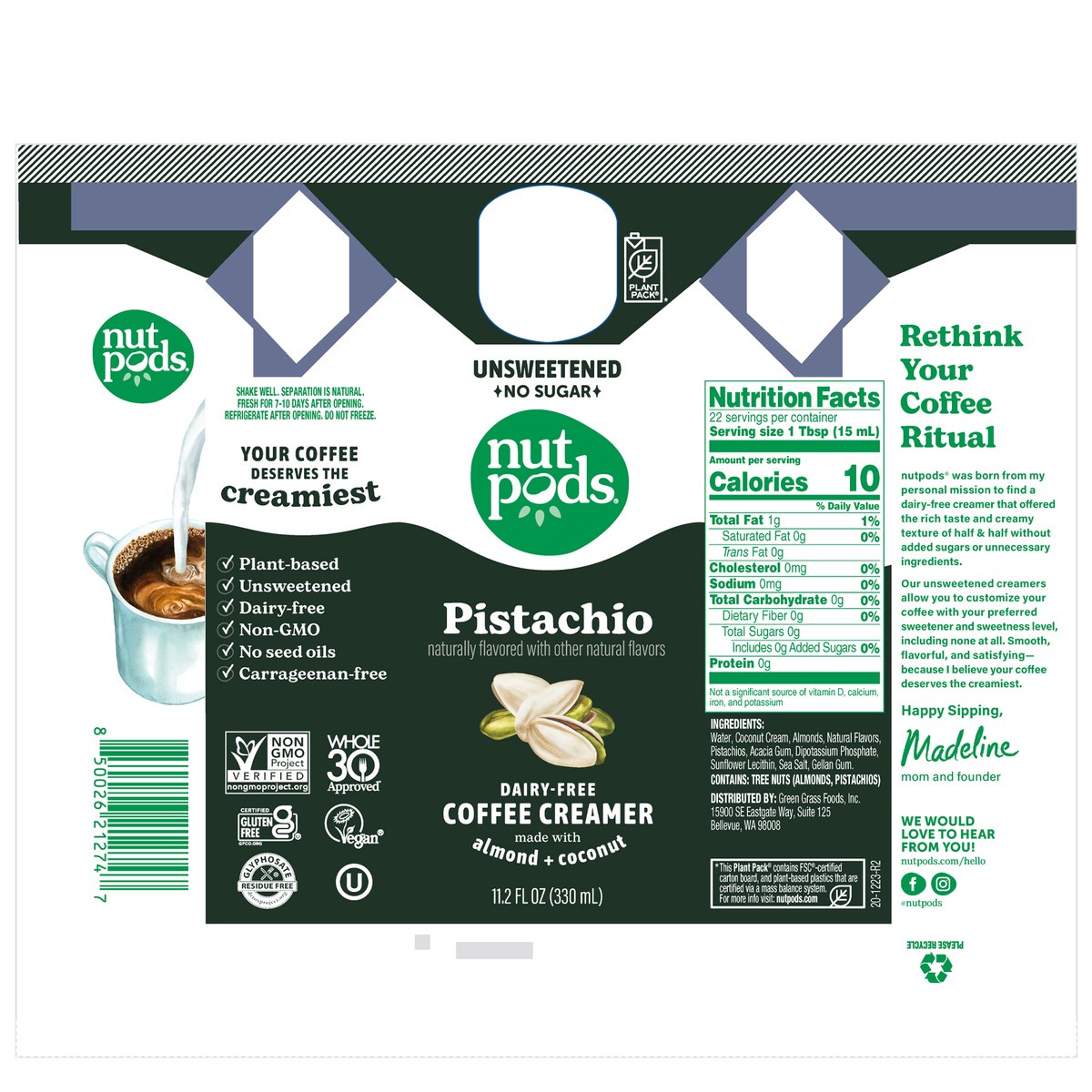 nutpods Unsweetened Non-Dairy Pistachio Coffee Creamer