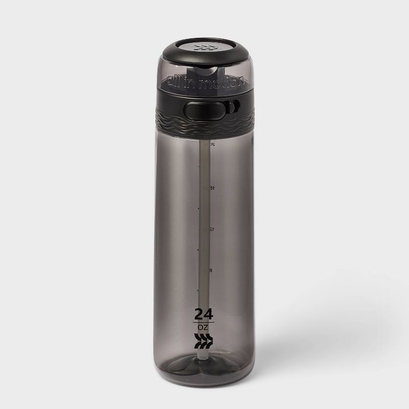 Why we're ALL IN:Tritan hydration water bottle made from plastic with polypropylene lid for active days. Features a lid with sipper design for easy drinking, as well as measurement markings to track c…