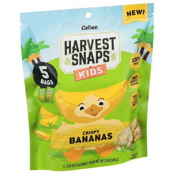 slide 1 of 1, Harvest Snaps Kids Crispy Bananas, 5-0.42 Oz Bags, 2.1 oz