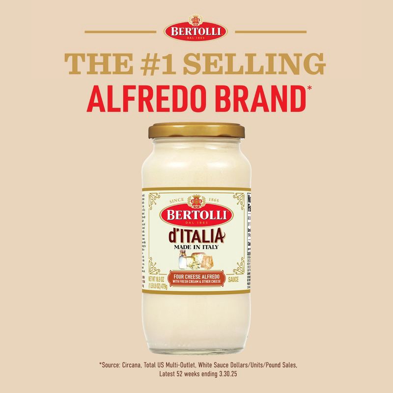 Simple is the Bertolli way. Immerse yourself in authentic Italian flavors with a 16.9 oz jar of d'Italia Four Cheese white alfredo white pasta sauce. Made in Italy with over 150 years of culinary expe…