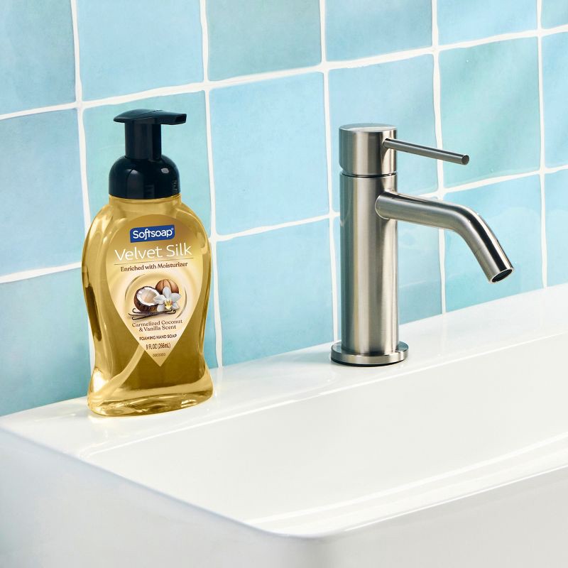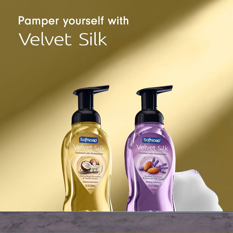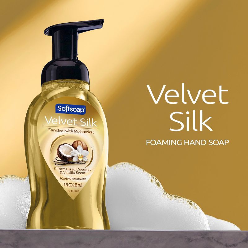 - Includes one 9 fl oz pump bottle of Softsoap Velvet Silk Foaming Liquid Hand Soap, Caramelized Coconut & Vanilla Scent, #1 liquid hand soap brand*
