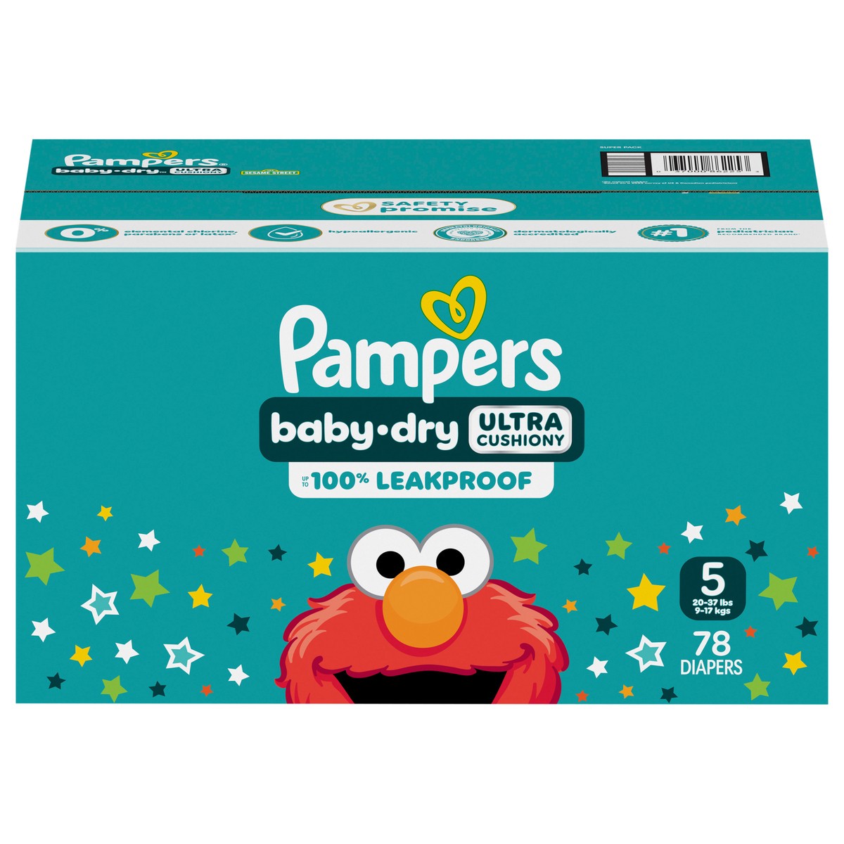 Pampers Baby Dry Diapers, Size 5, 27+ lbs, 78 Count, Absorbent Disposable Diapers