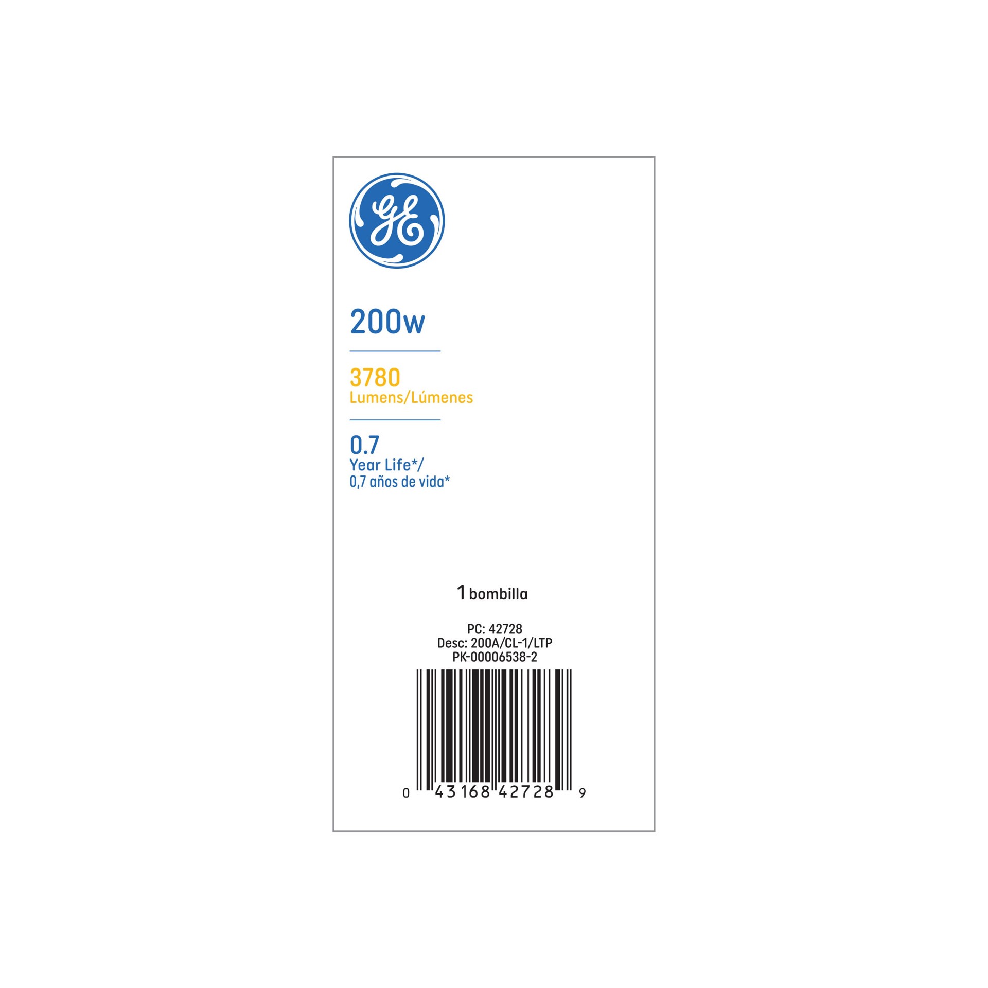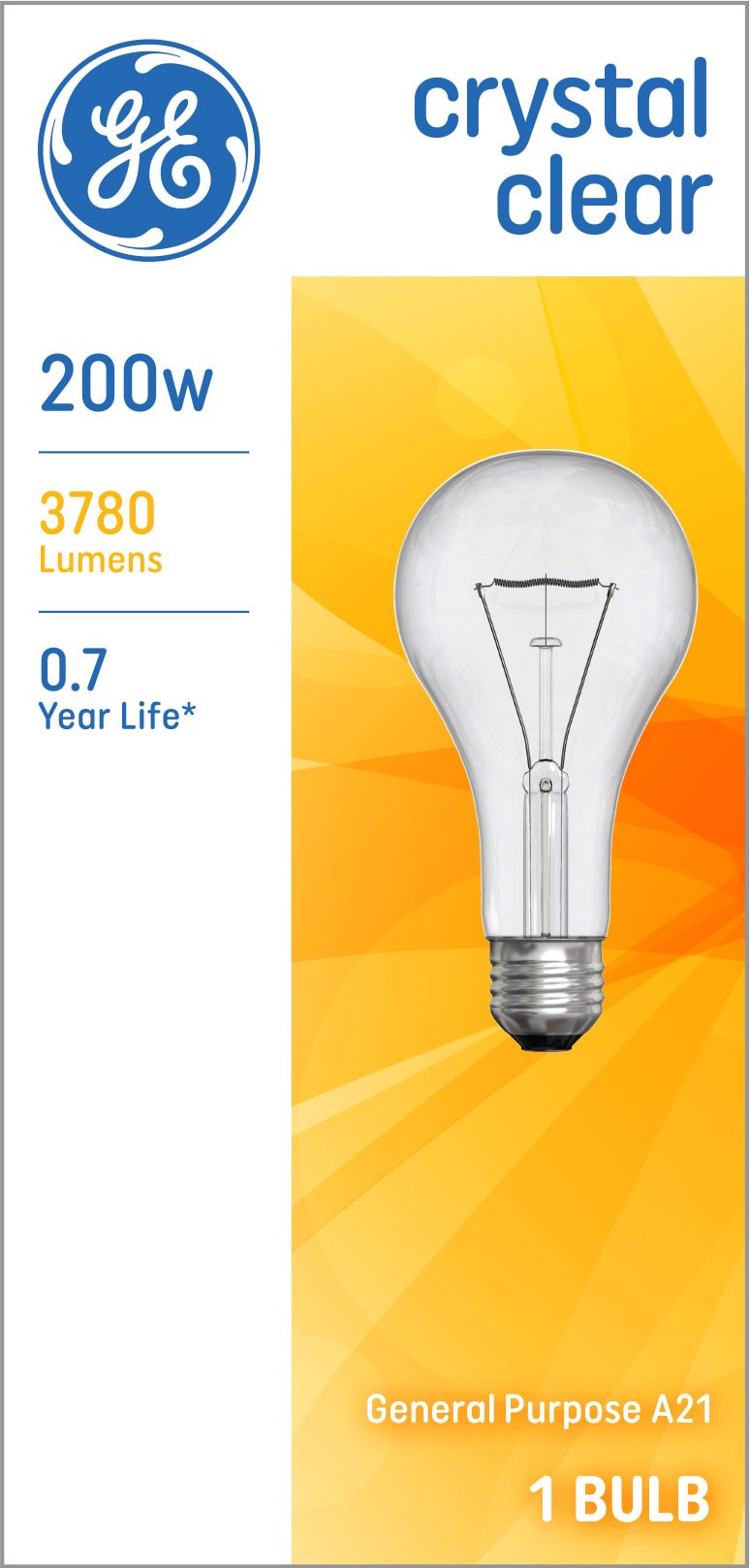 Uses 200 Watts (3780 lumens). Rated to last 0.7 years based on 3 hours per day use. Clear finish adds a decorative touch. Dimmable and works with most dimmer switches. Warm, soft white light with 2950…