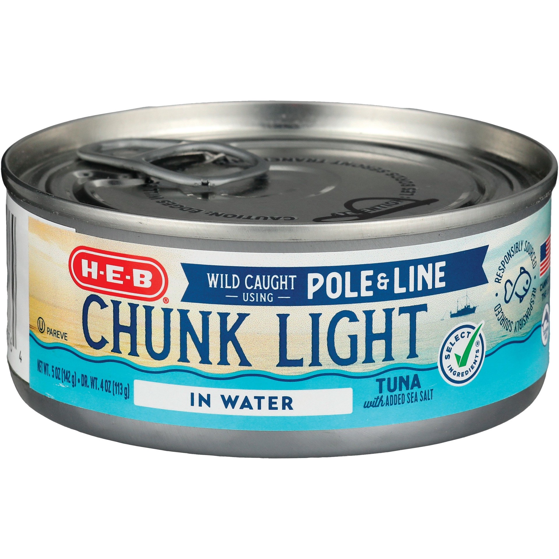 Wild caught using a pole and line, this can of H-E-B chunk light tuna is packed in water with added sea salt. Responsibly sourced and dolphin-safe, these flaky pieces have a soft texture that's great …