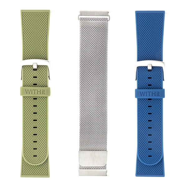 WITHit Band Kit for Fitbit Versa, Versa Lite and Versa 2 (3-Pack) - Silver/Olive/Navy