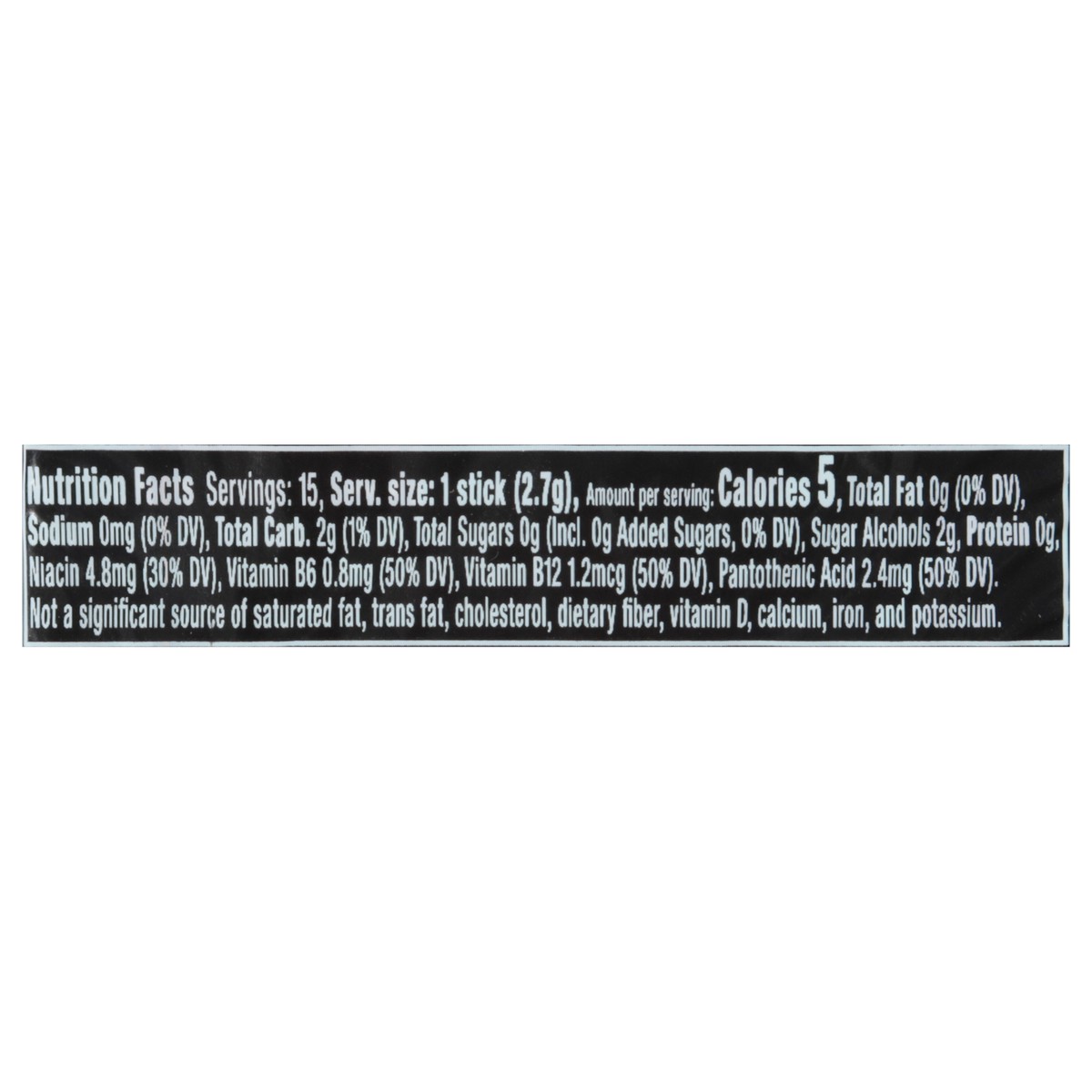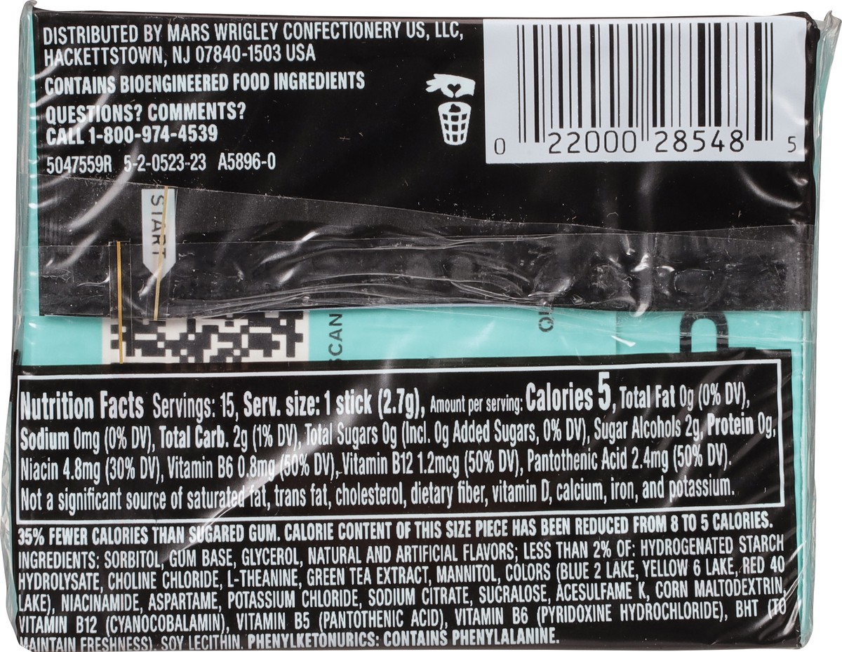Sorbitol, Gum Base, Glycerol, Natural and Artificial Flavors; Less than 2% of: Hydrogenated Starch Hydrolysate, Choline Chloride, L-Theanine, Green Tea Extract, Mannitol, Colors (Blue 2 Lake, Yellow 6…