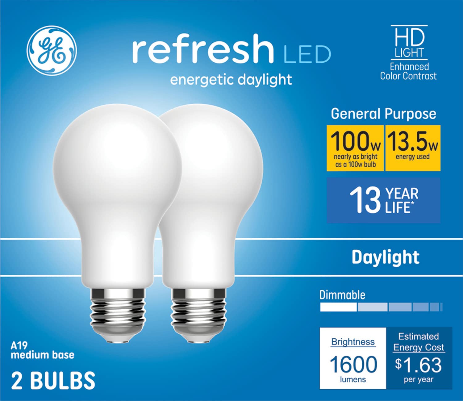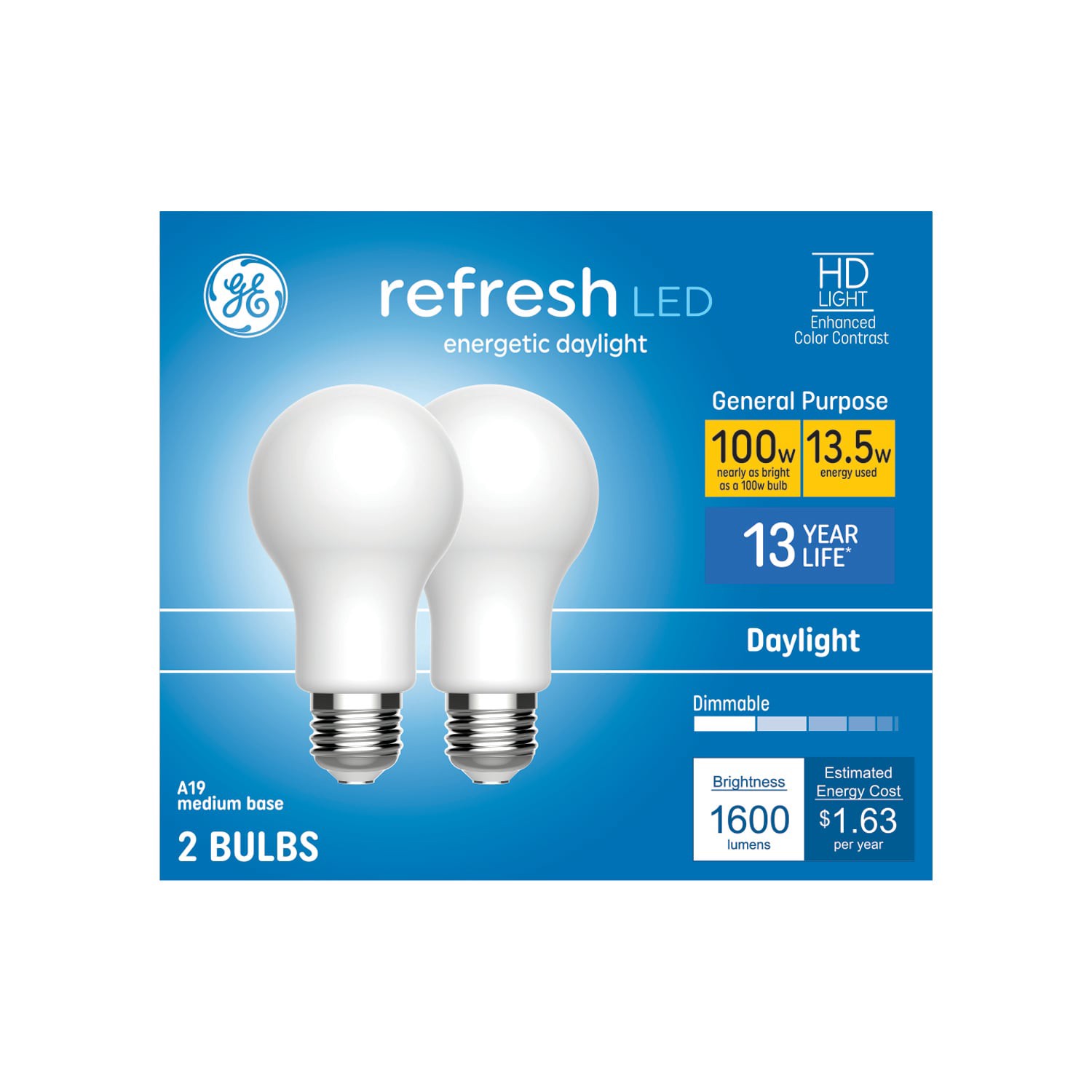 GE 100 -Watt EQ A21 Daylight Medium screw base Dimmable LED General purpose Light Bulb 2 -Pack