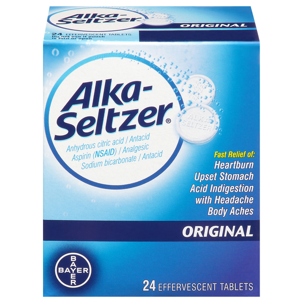 Active Ingredients (in Each Tablet)...Purpose Anhydrous Citric Acid 100mg...AntacidAspirin 325mg (NSAID)*...AnalgesicSodium Bicarbonate (Heat-Treated) 1916mg...Antacid *Nonsteroidal Anti-Inflammatory …
