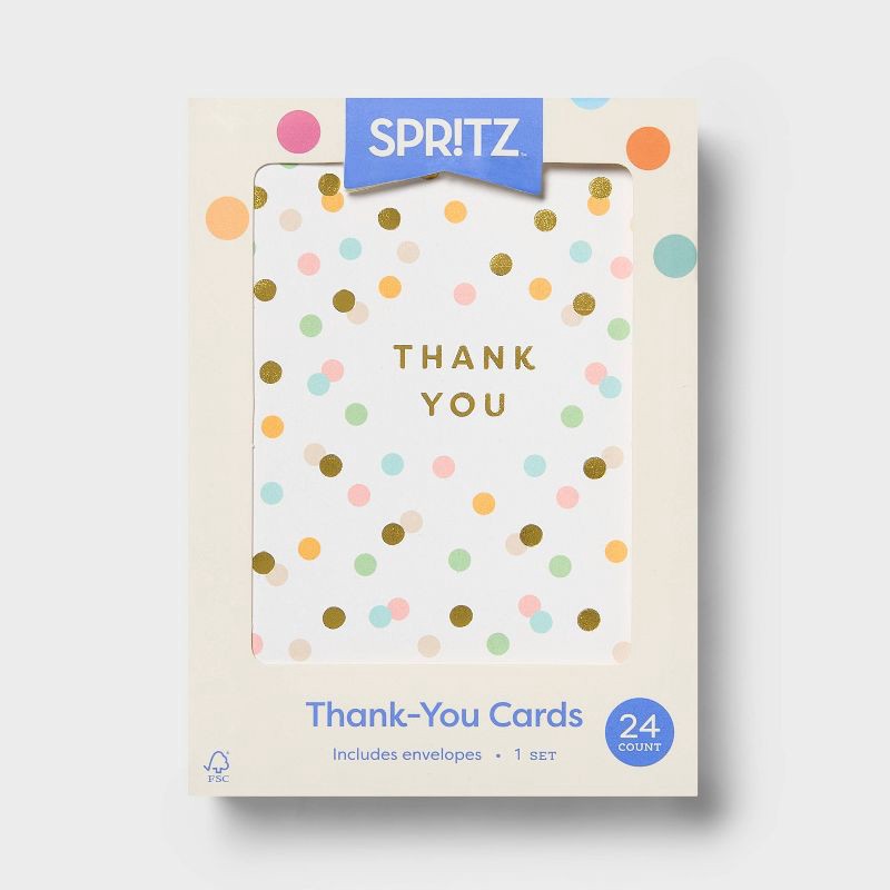 24ct Thank You Neutral Dot - Spritz™: Polka Dot Cards with Envelopes, Foil Accents, Multicolored, Single-Design Boxed Pack