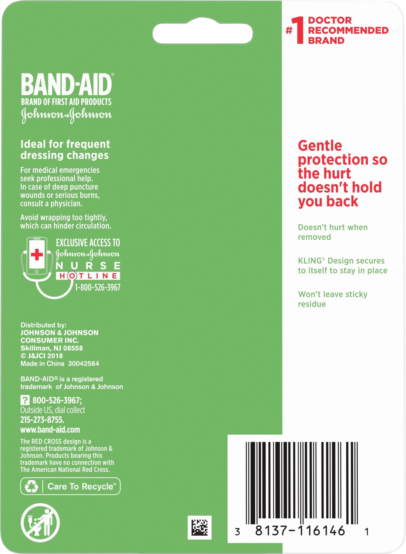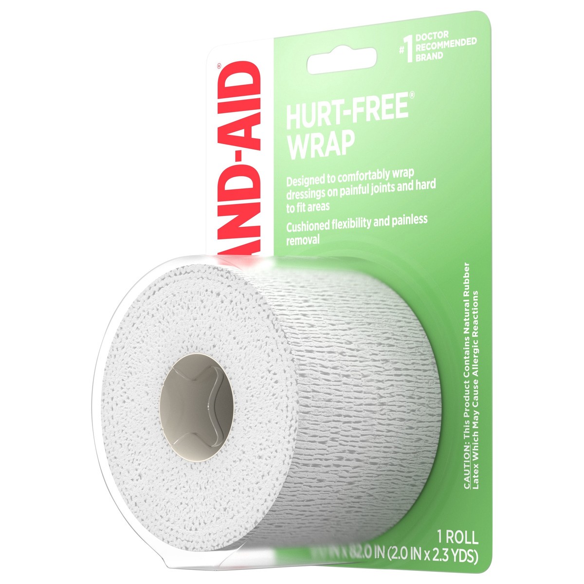 Band-Aid Brand of First Aid Products Hurt-Free Wrap firmly and comfortably secures dressings onto post-surgical wounds. This self-adherent wrap is specially designed to stick to itself without the nee…