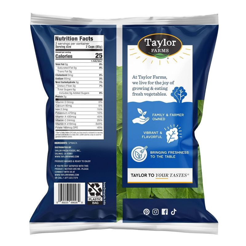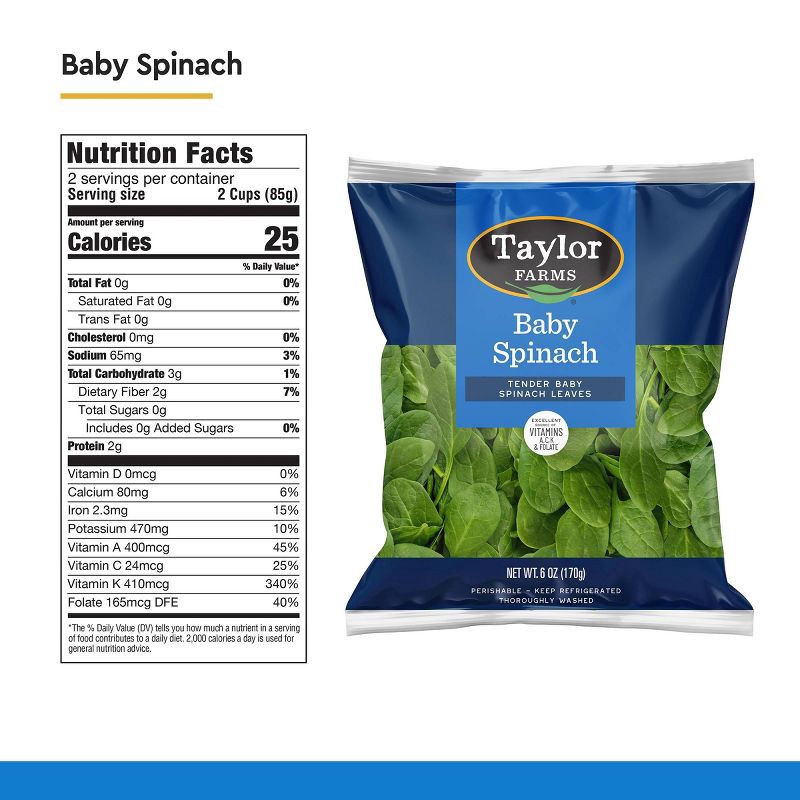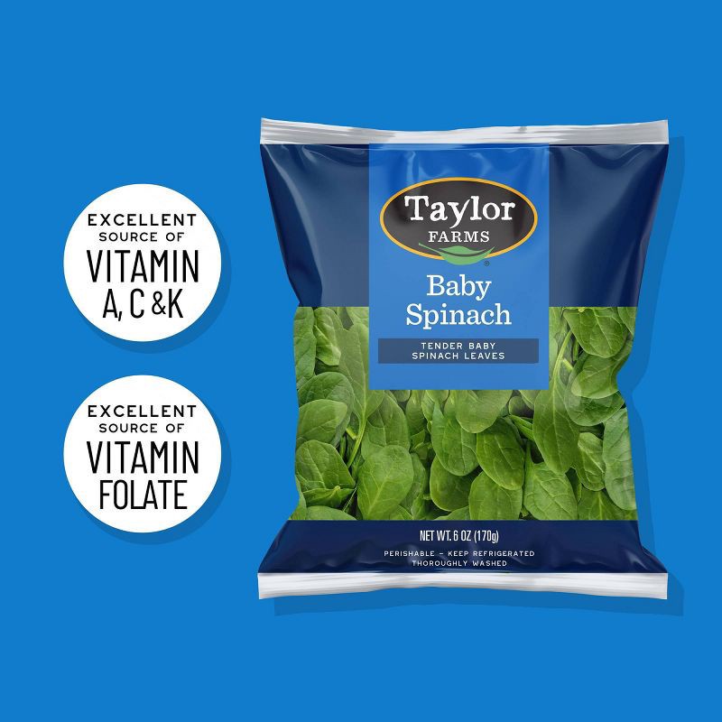 Taylor Farms' fresh Baby Spinach offers you a convenient way to boost your dishes, both in flavor and nutrition. This “younger” spinach is picked a little earlier than standard varieties. It has small…
