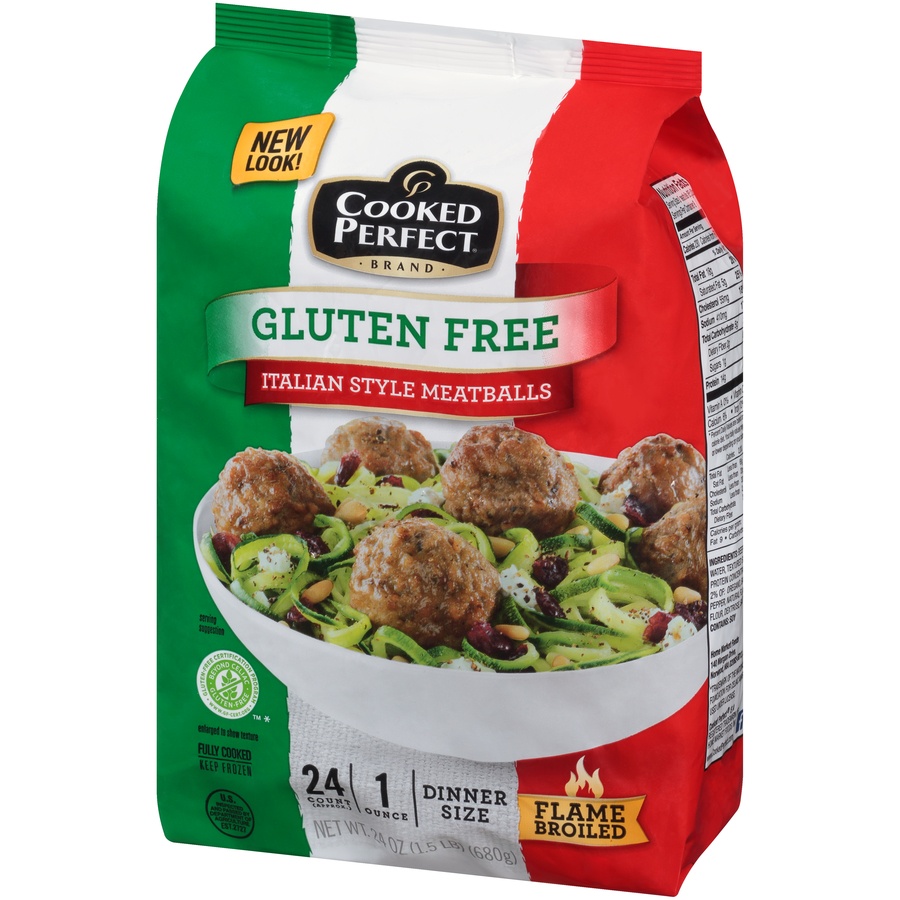 24 count (approx.). 1 ounce. Flame broiled. Fully cooked. Gluten free. Shown with gluten free pasta. US inspected and passed by Department of Agriculture. Thank you for purchasing Cooked Perfect Itali…