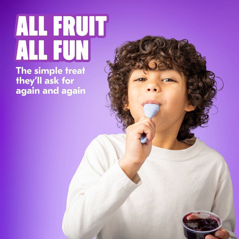 - FRUIT CUP THAT JIGGLES: A spoonable fruit cup made with real fruit juices, with a smooth, jiggly jelly texture.