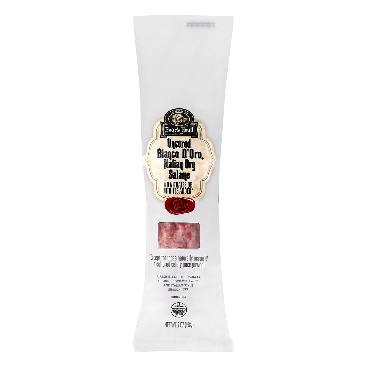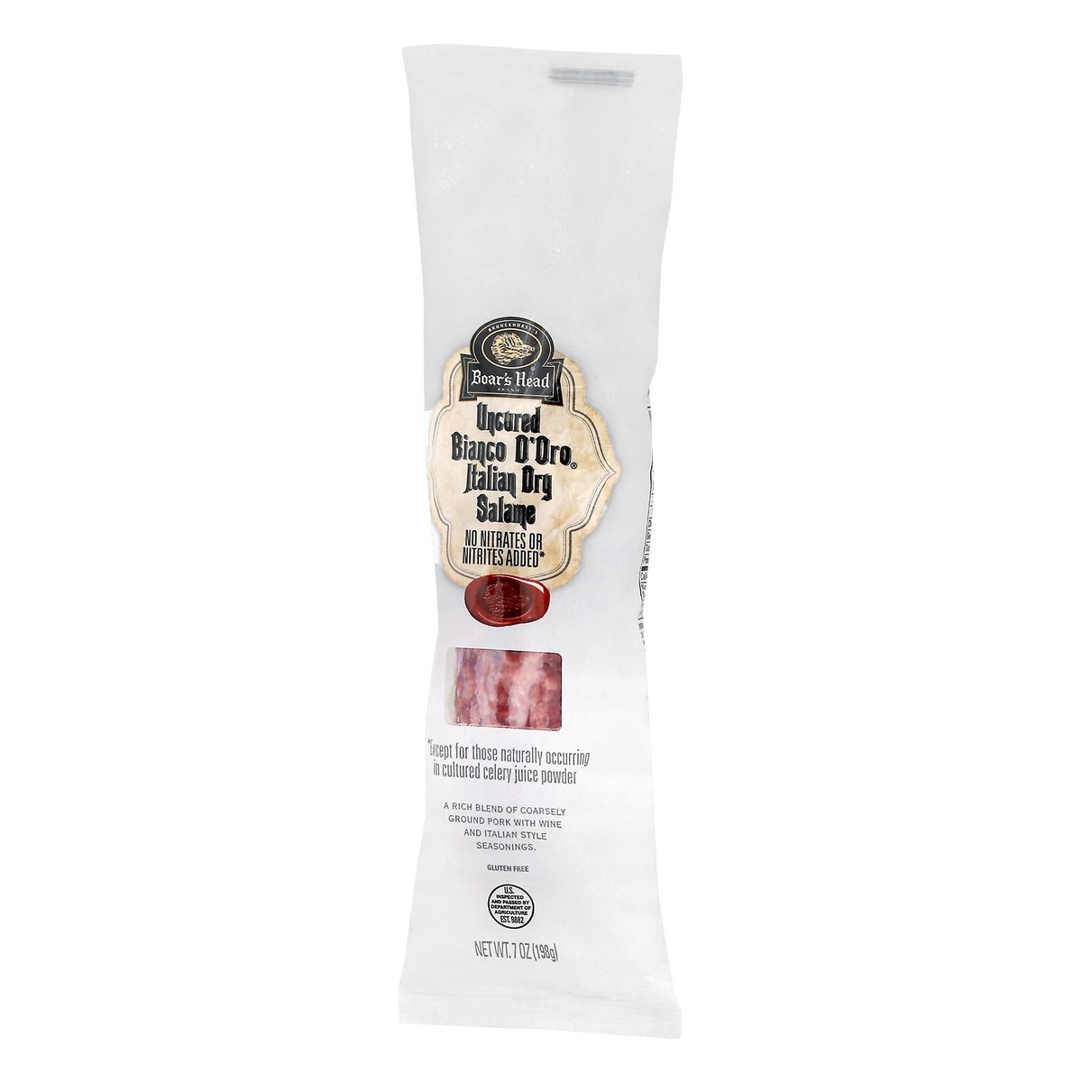 A rich blend of finely ground pork with wine and Italian style seasonings made in the traditional Old World manner. Boar''s Head Uncured Bianco D'Oro Salame is an authentic culinary classic aged to pr…