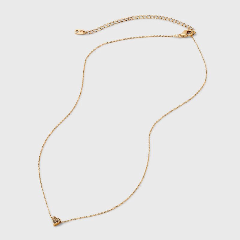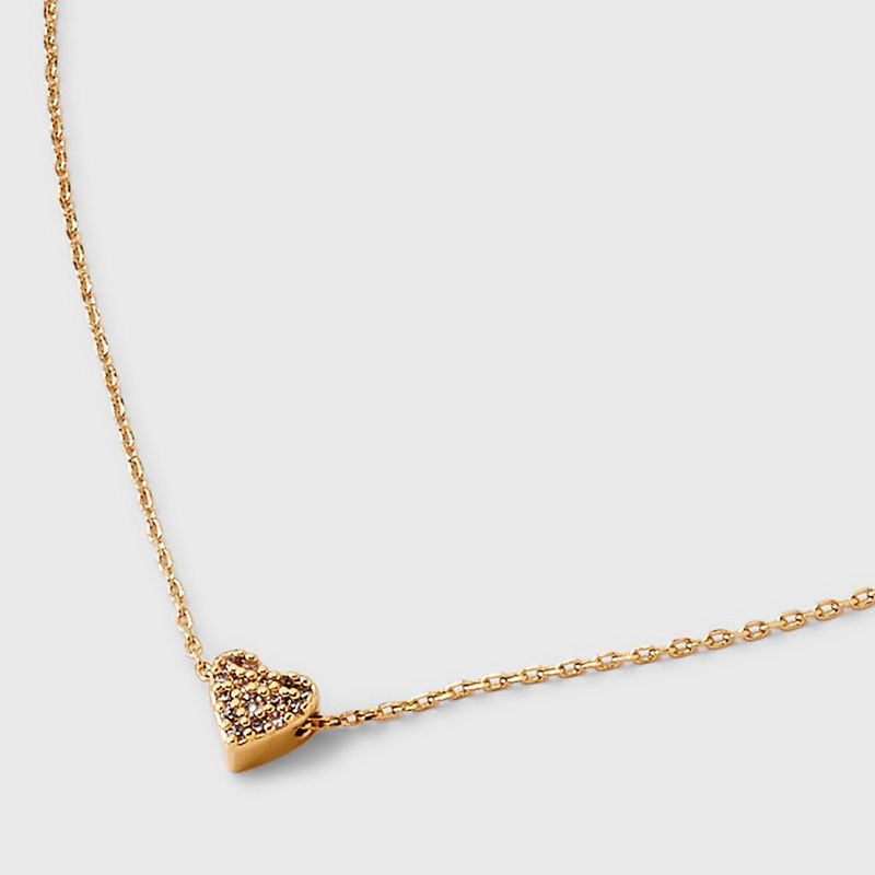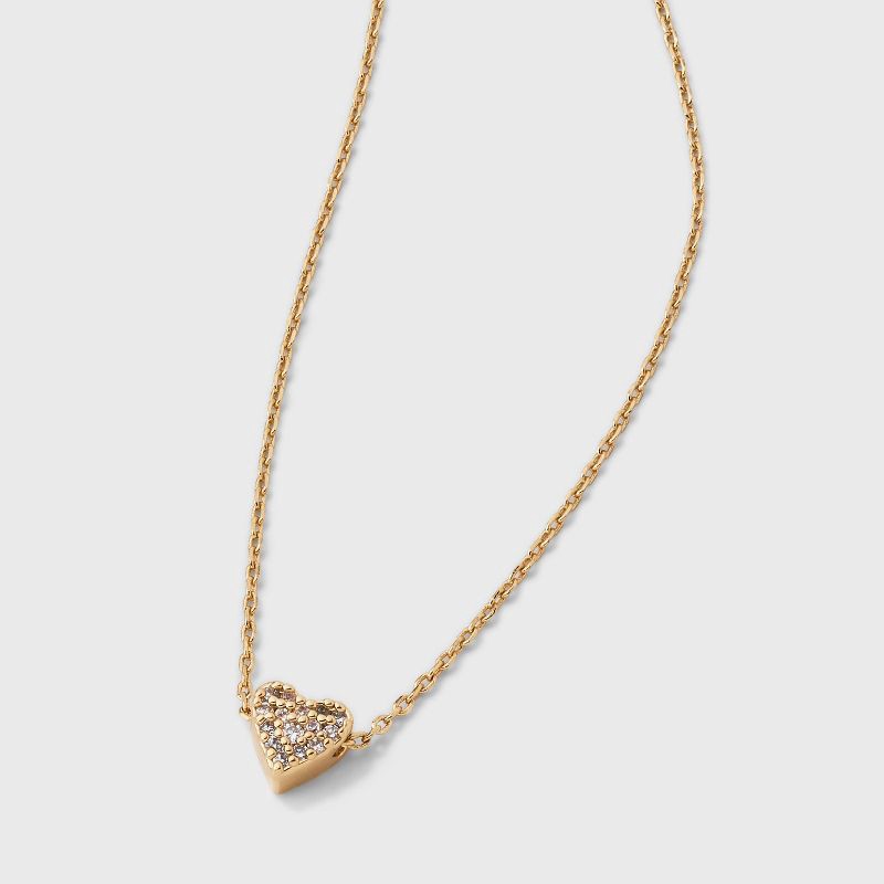14K Gold Dipped Micro Cubic Zirconia Heart Pendant Necklace - Gold