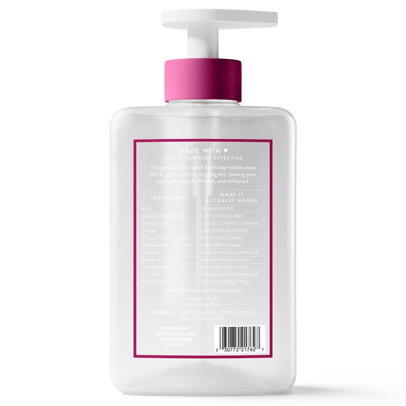 Native Liquid Hand Soap - Cherry & Vanilla Macaron - 13 fl oz: Dye-Free, Paraben-Free, Sulfate-Free