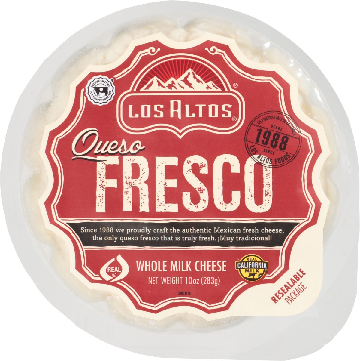 Los Altos Queso Fresco is the most versatile and popular of queso frescos. This unripened farmer's cheese is soft, white, flavorfully fresh and moist, moderately salty, and robustly creamy.