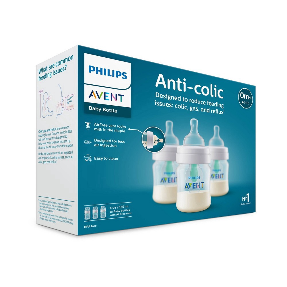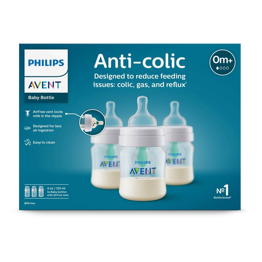 Philips Avent Anti-colic with AirFree vent bottles are designed to reduce feeding issues: such as colic, gas, and reflux. The unique AirFree vent is designed to draw air away from the nipple keeping i…