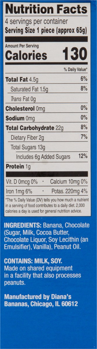 Diana's Real Bananas Milk Chocolate Whole Fruit Treats 4 - 2.3 oz Pieces