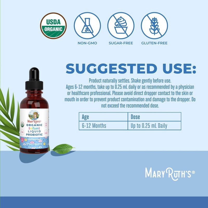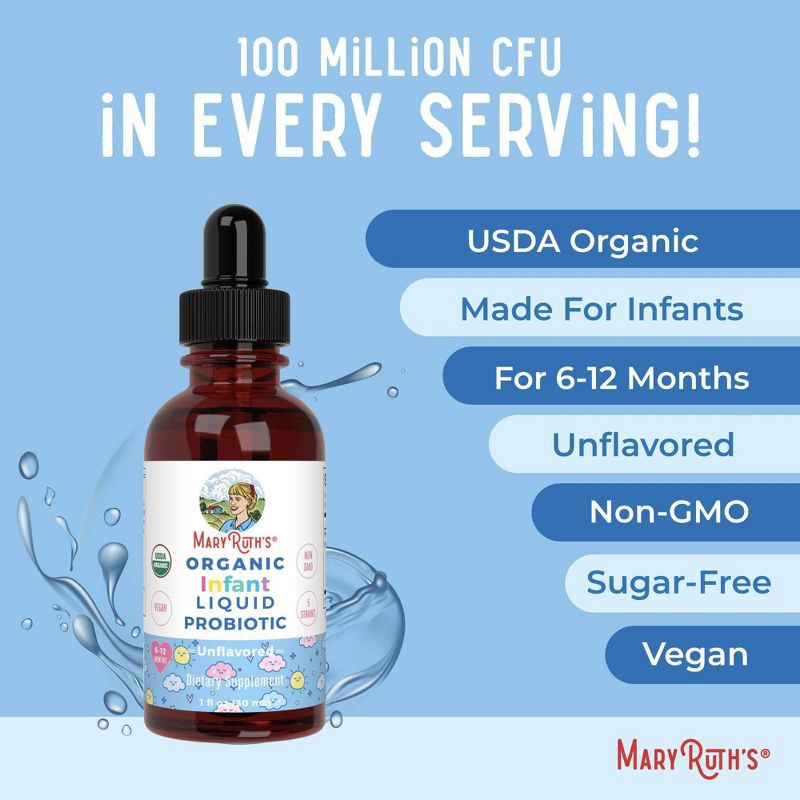 MaryRuth's Organic Infant Liquid Probiotic Drops - 1 fl oz: Vegan, Non-GMO, 300000 CFUs, Bifidobacterium Longum