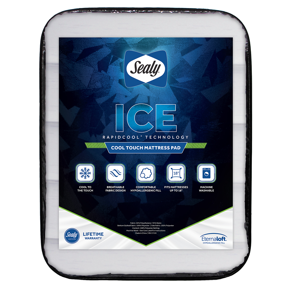Transform your mattress with the Sealy Ice Cool Touch Mattress Pad. Crafted with BlueCool technology, this mattress pad delivers an instant cool to the touch sensation, perfect for anyone who sleeps h…