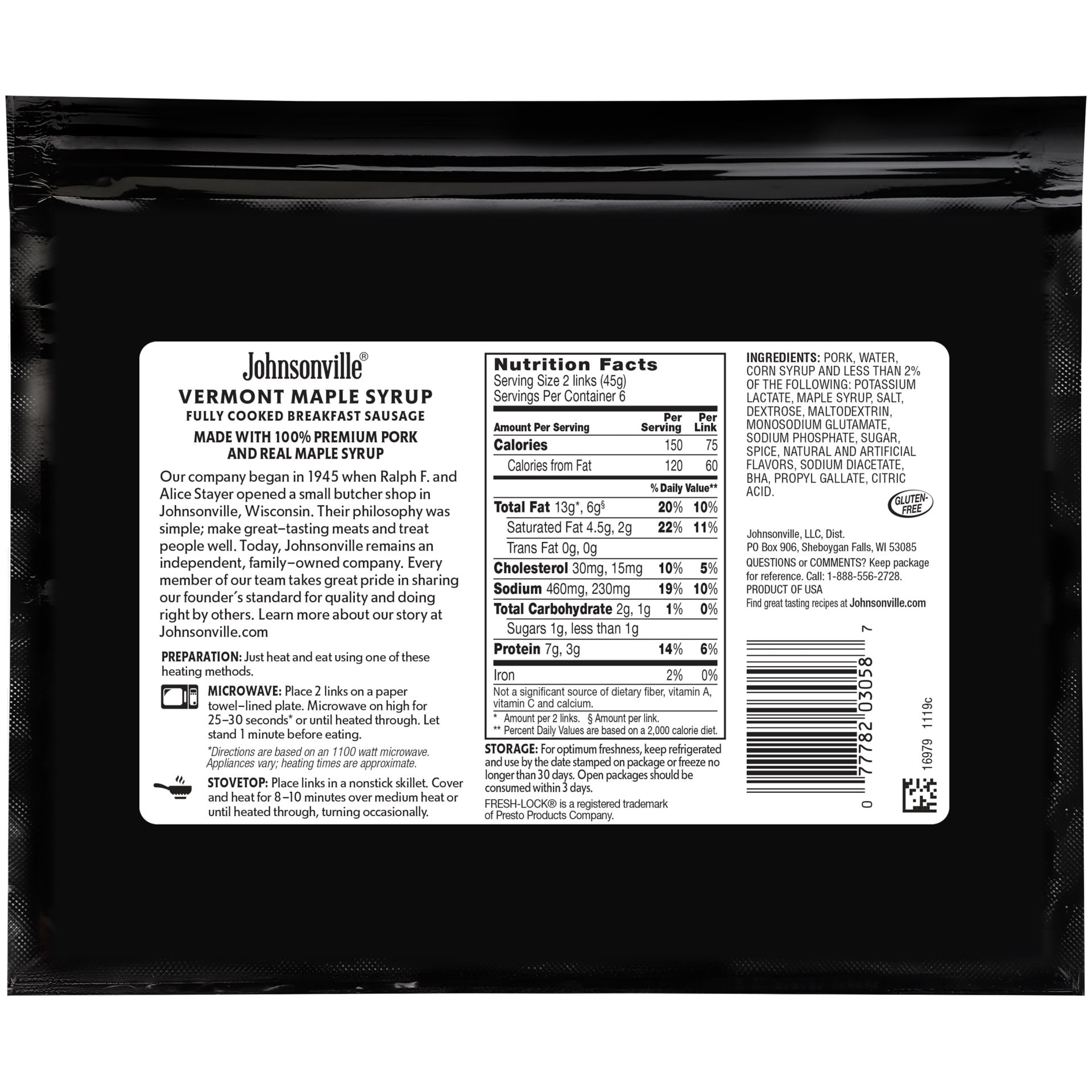 Johnsonville Fully Cooked Vermont Maple Syrup Breakfast Sausage, 12 Count, 9.6 oz
