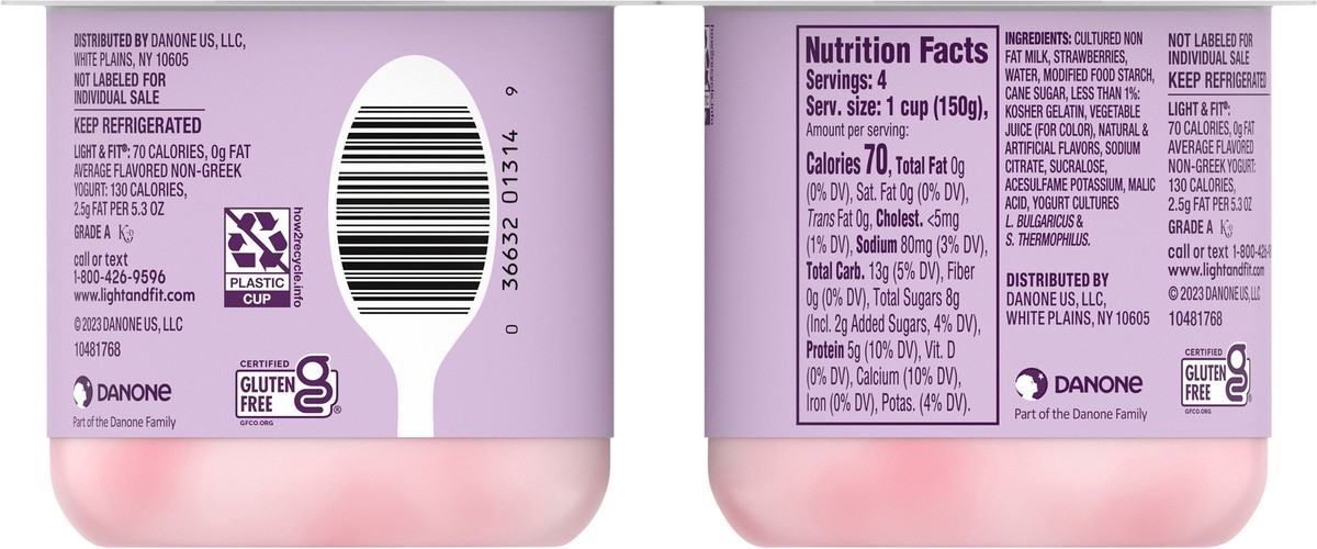 Light + Fit Strawberry Nonfat Gluten Free Yogurt - 4-5.3 Oz