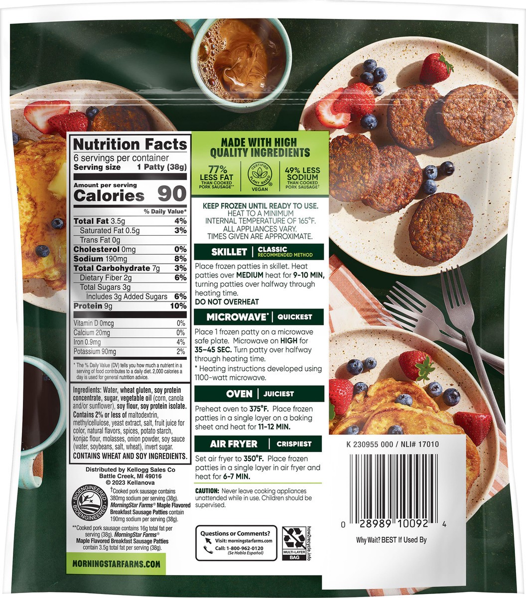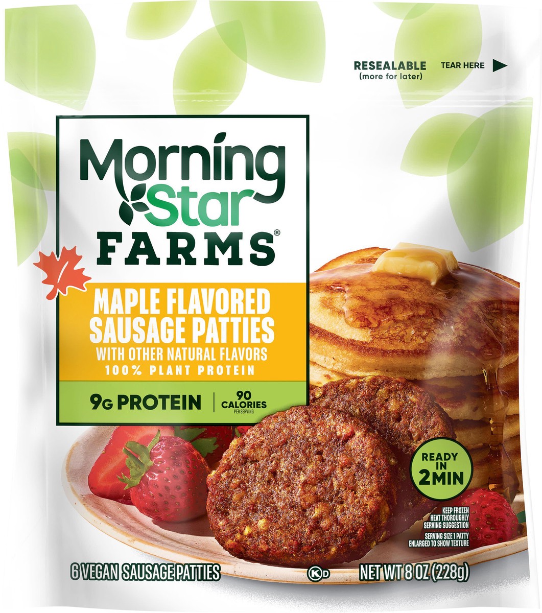 MorningStar Farms Maple Flavored sausage patties are plant-based and seasoned with an inviting maple flavor. This convenient, hearty breakfast side will delight everyone in your family. With 77% less …