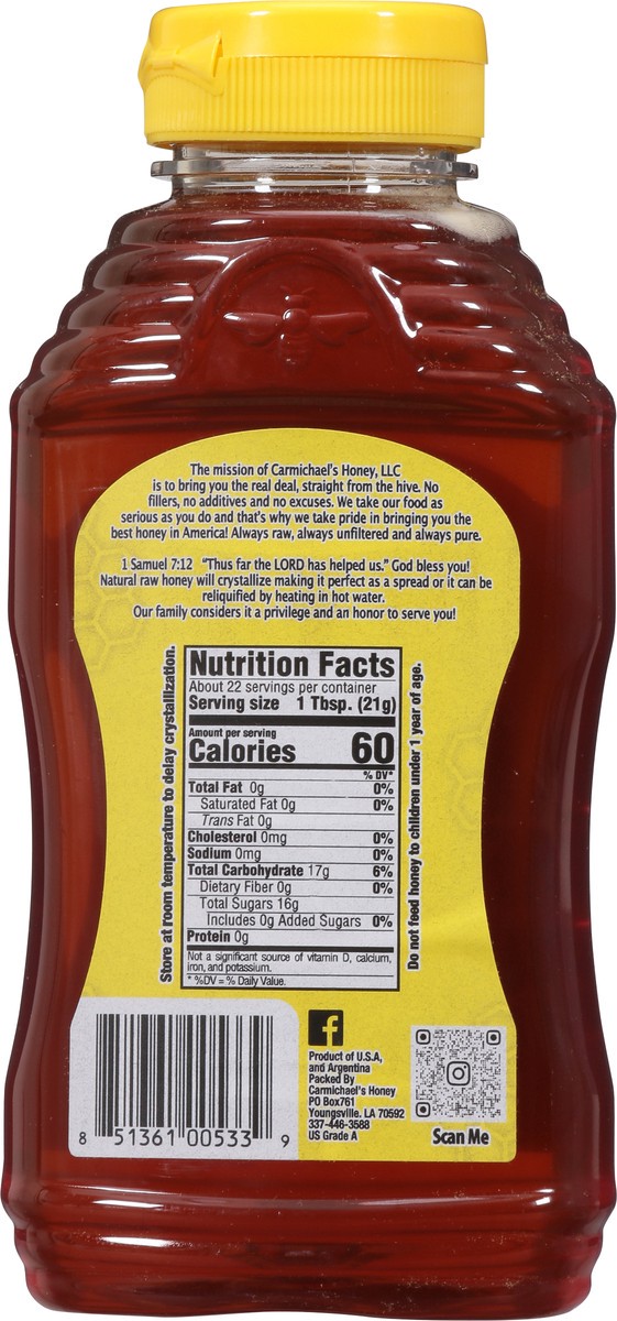 Carmichael's 100% Pure & Raw Unfiltered Honey - 16 oz