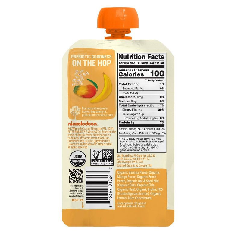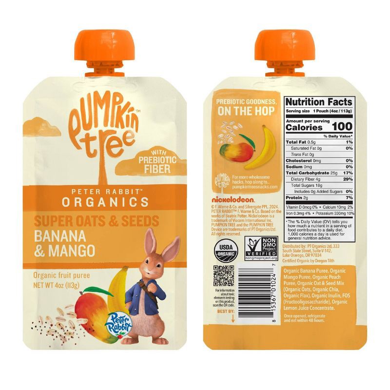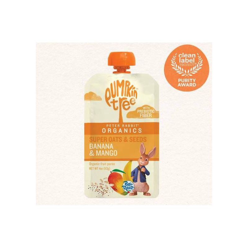 Keep your little one from getting 'hangry' with Pumpkin Tree Peter Rabbit Organics Banana Mango Prebiotic Fiber Oats and Seeds pouches. Our simple and tasty plant based pouches are Clean Label Project…