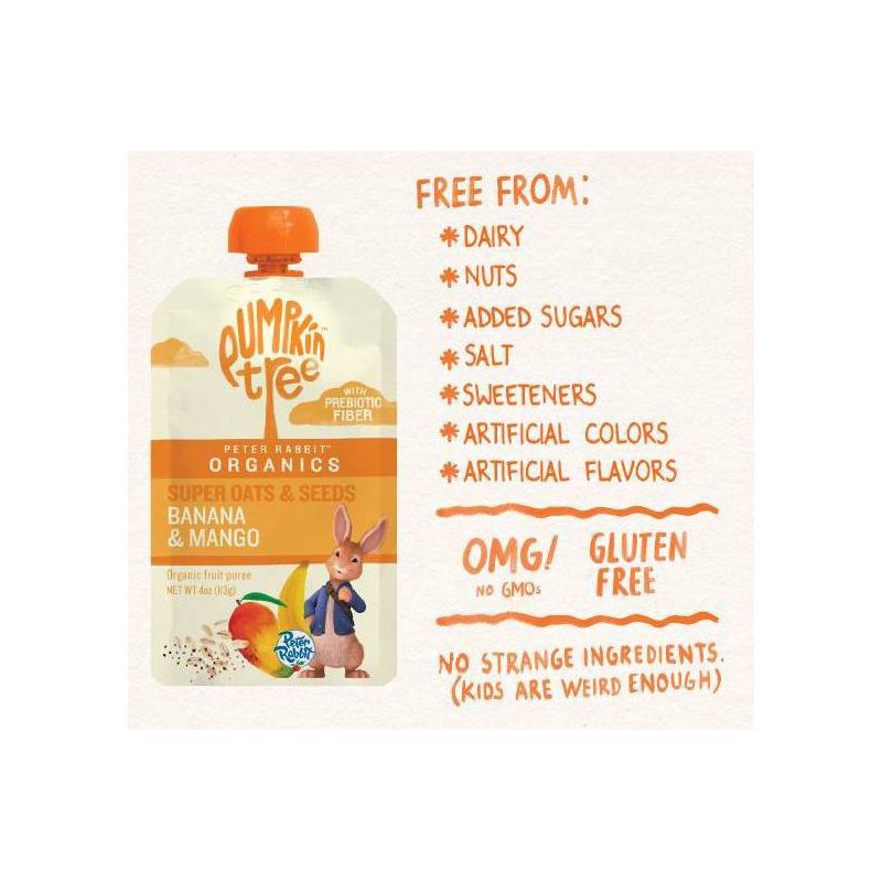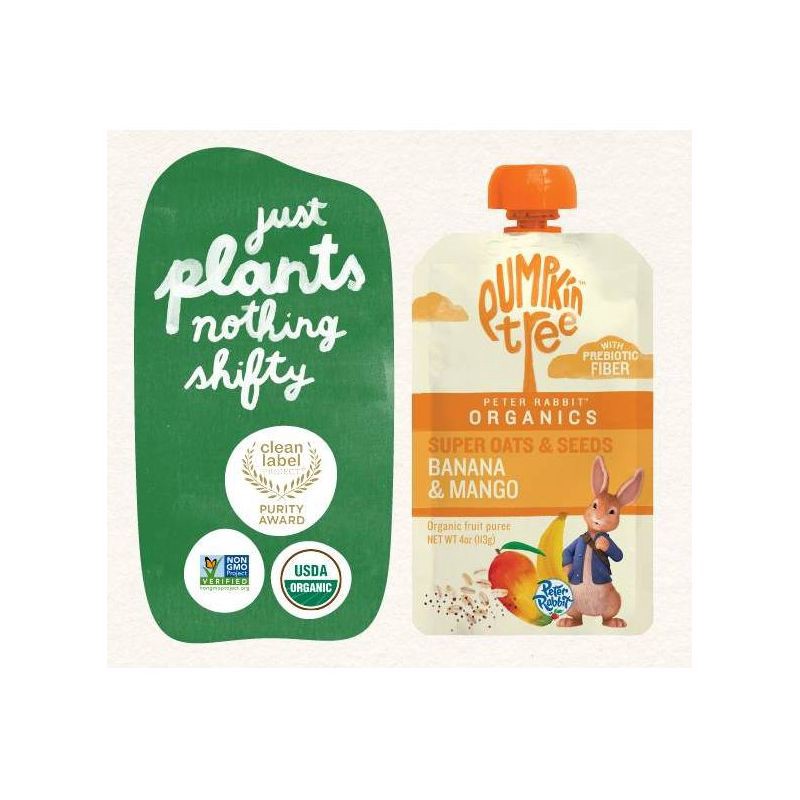 Peter Rabbit Organics Prebiotic Fiber Oats and Seeds Banana Mango Pureed Baby Food - 4oz: Organic Certified, Non-GMO, Ready to Eat, Pouch