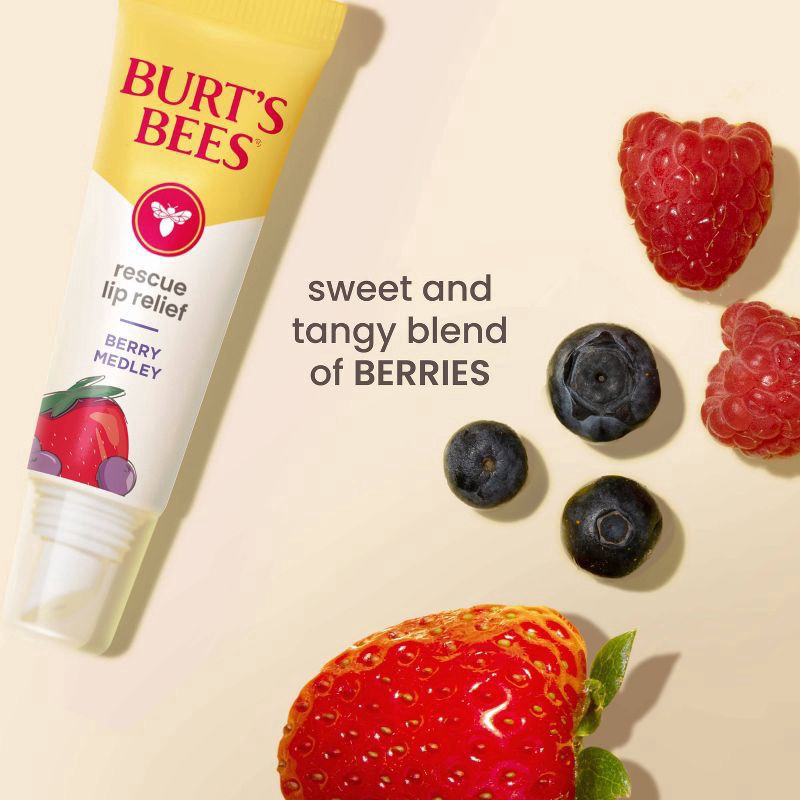 Burt''s Bees Rescue Lip Relief with Berry Medley flavor soothes your cracked and chapped lips with an effective and delightful formula. Enjoy the taste of a delicious blend of sweet and tangy assorted…