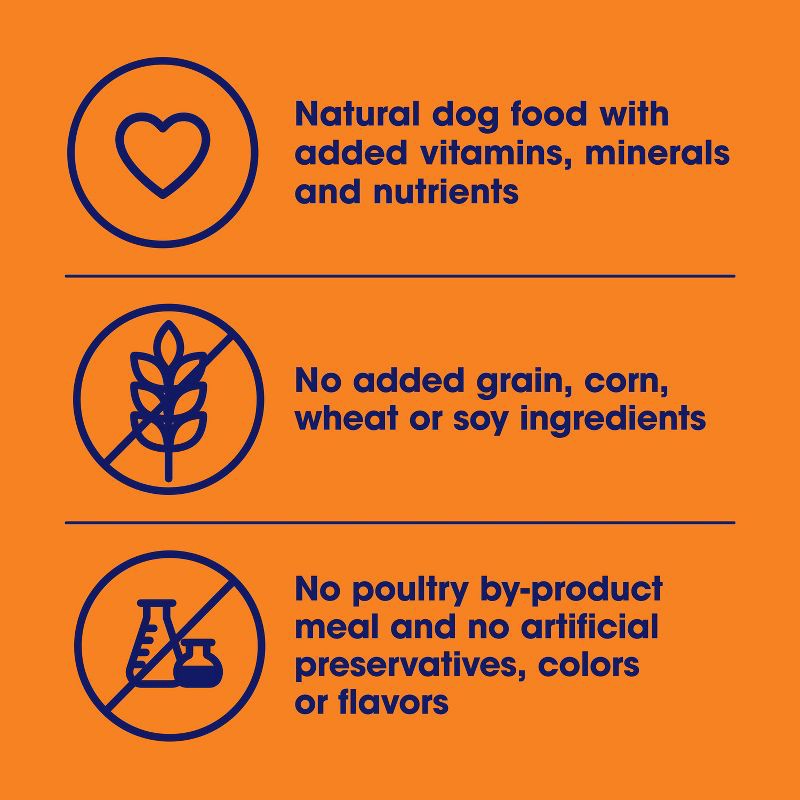 - No added corn, wheat or soy, no poultry by-products, and no artificial flavors or preservatives