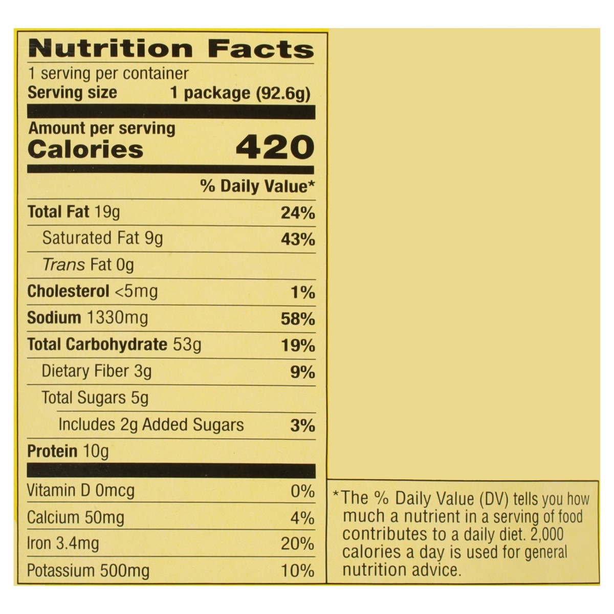 Enriched Flour (Wheat Flour, Niacin, Reduced Iron, Thiamine Mononitrate, Riboflavin, Folic Acid), Vegetable Oil (Palm Oil, Palm Olein Oil), Salt, Contains Less than 2% of Beef Fat, Beta Carotene Color…