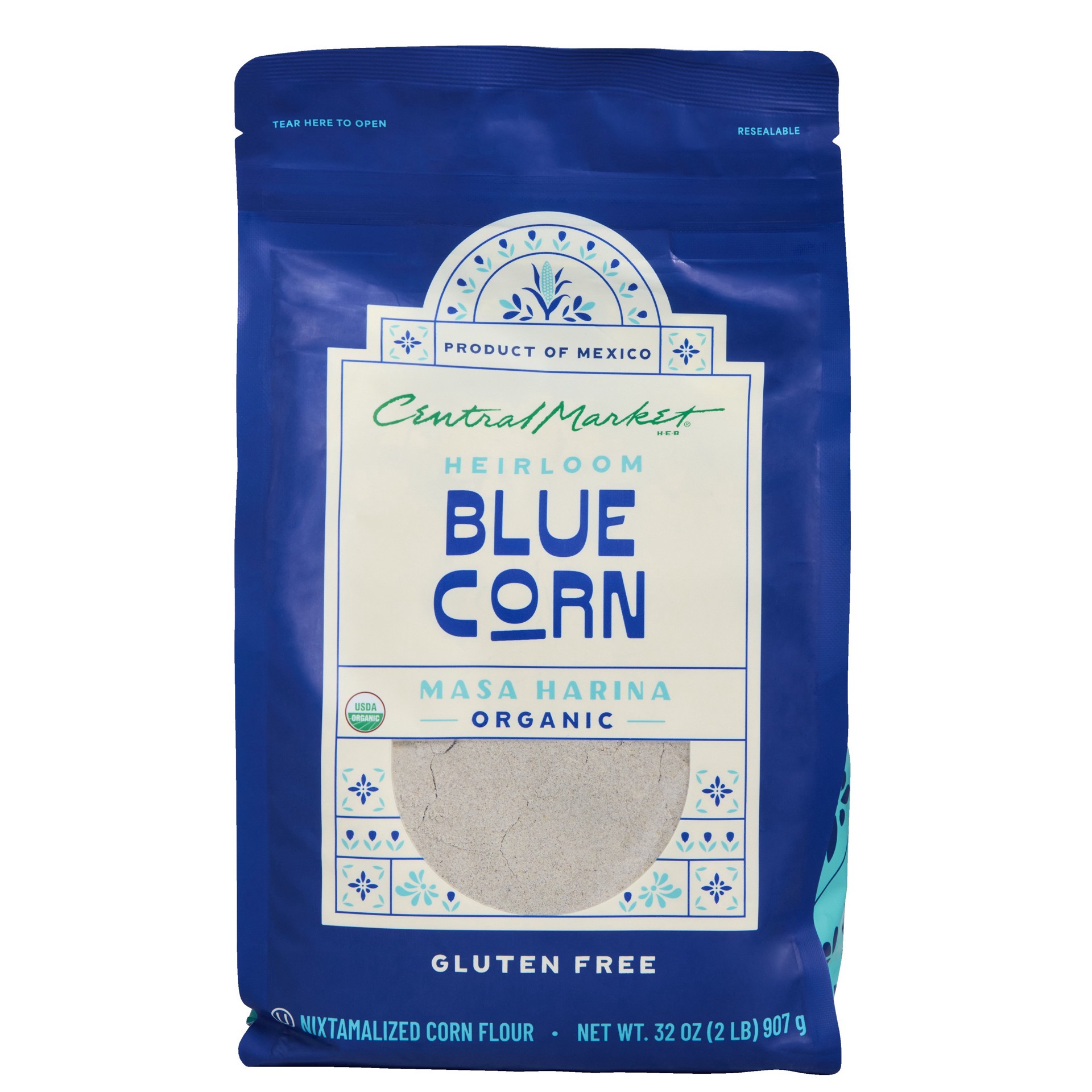 Central Market organic heirloom corn masa harina made from heritage varieties of grains traditionally passed down through generations of farmers and crops that are exclusively non-irrigated and free f…
