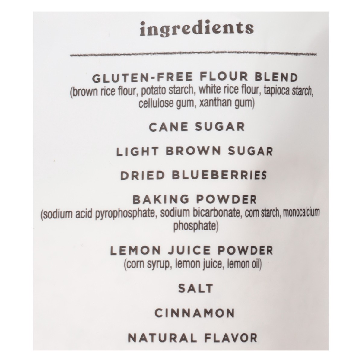 Gluten-Free Flour Blend (Brown Rice Flour, Potato Starch, White Rice Flour, Tapioca Starch, Cellulose Gum, Xanthan Gum), Cane Sugar, Light Brown Sugar, Dried Blueberries, Baking Powder (Sodium Acid Py…