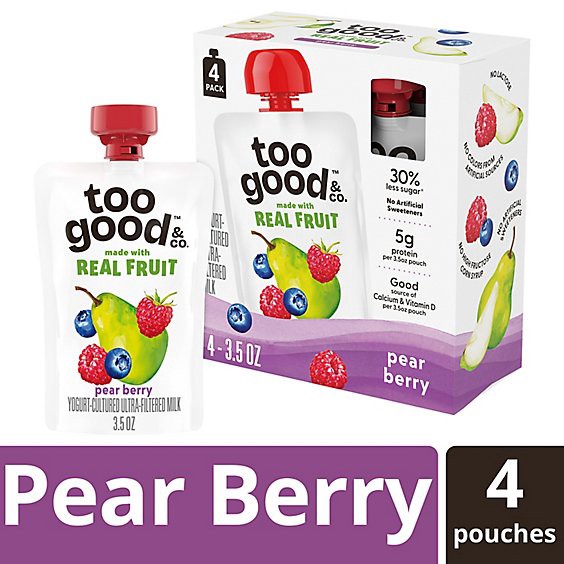 Give your kids good that tastes great with Too Good & Co. Pear Berry Yogurt-Cultured Ultra-Filtered Milk Pouches. Too Good kids pouches are made with real fruit, 30% less sugar* and 5g protein. These …