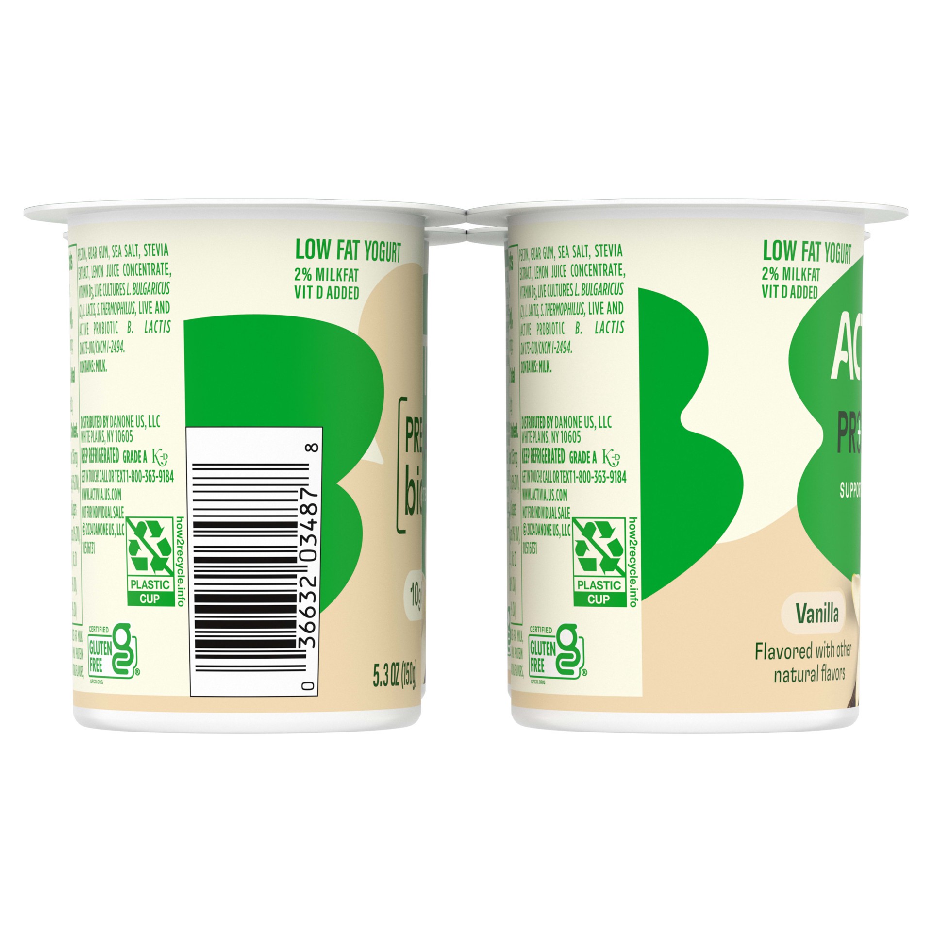 Start your day with your gut health in mind with Activia Proactive Vanilla Prebiotic and Probiotic Low Fat Yogurt Cups. Each 5.3 oz yogurt cup of creamy vanilla yogurt contains billions of live and ac…