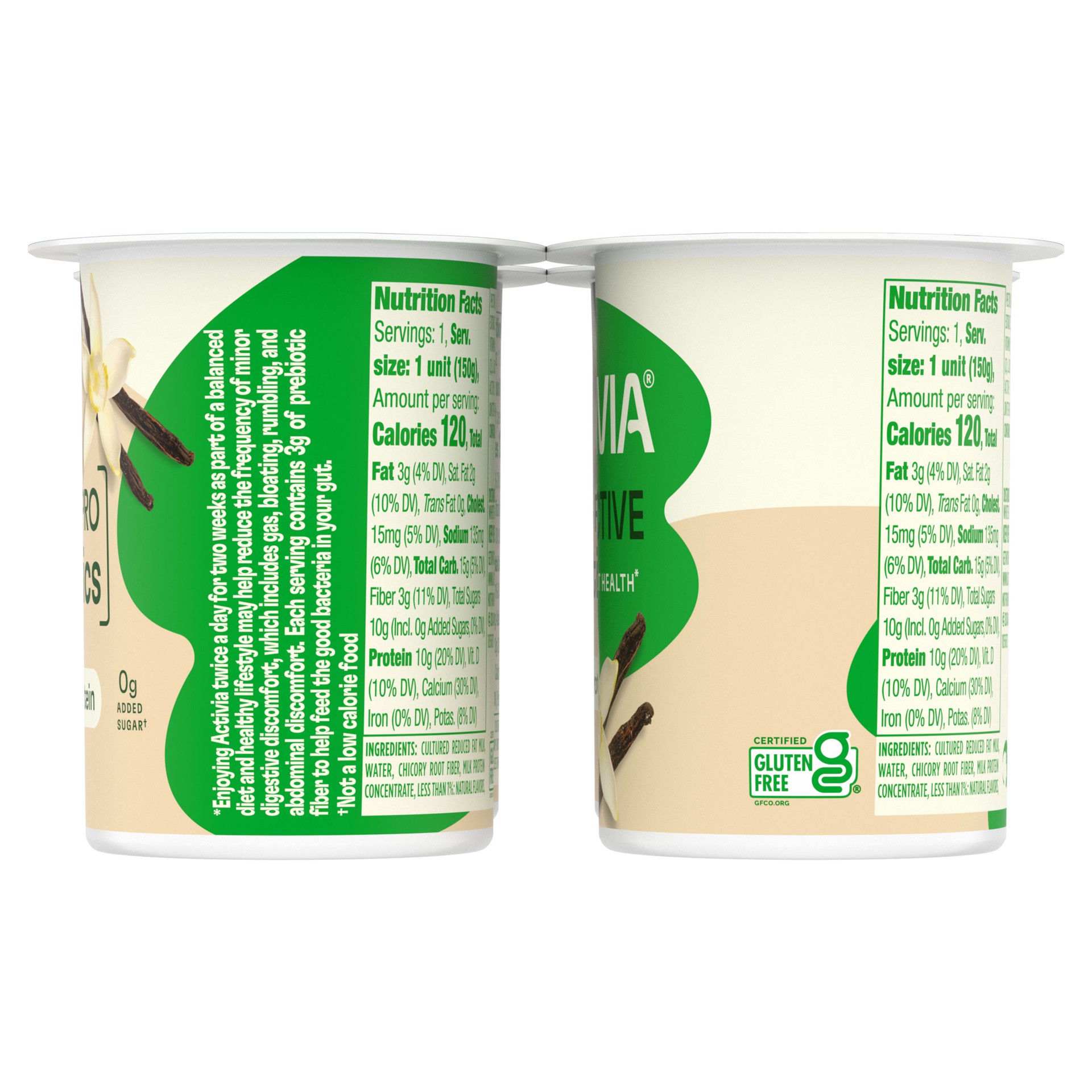 Start your day with your gut health in mind with Activia Proactive Vanilla Prebiotic and Probiotic Low Fat Yogurt Cups. Each 5.3 oz yogurt cup of creamy vanilla yogurt contains billions of live and ac…