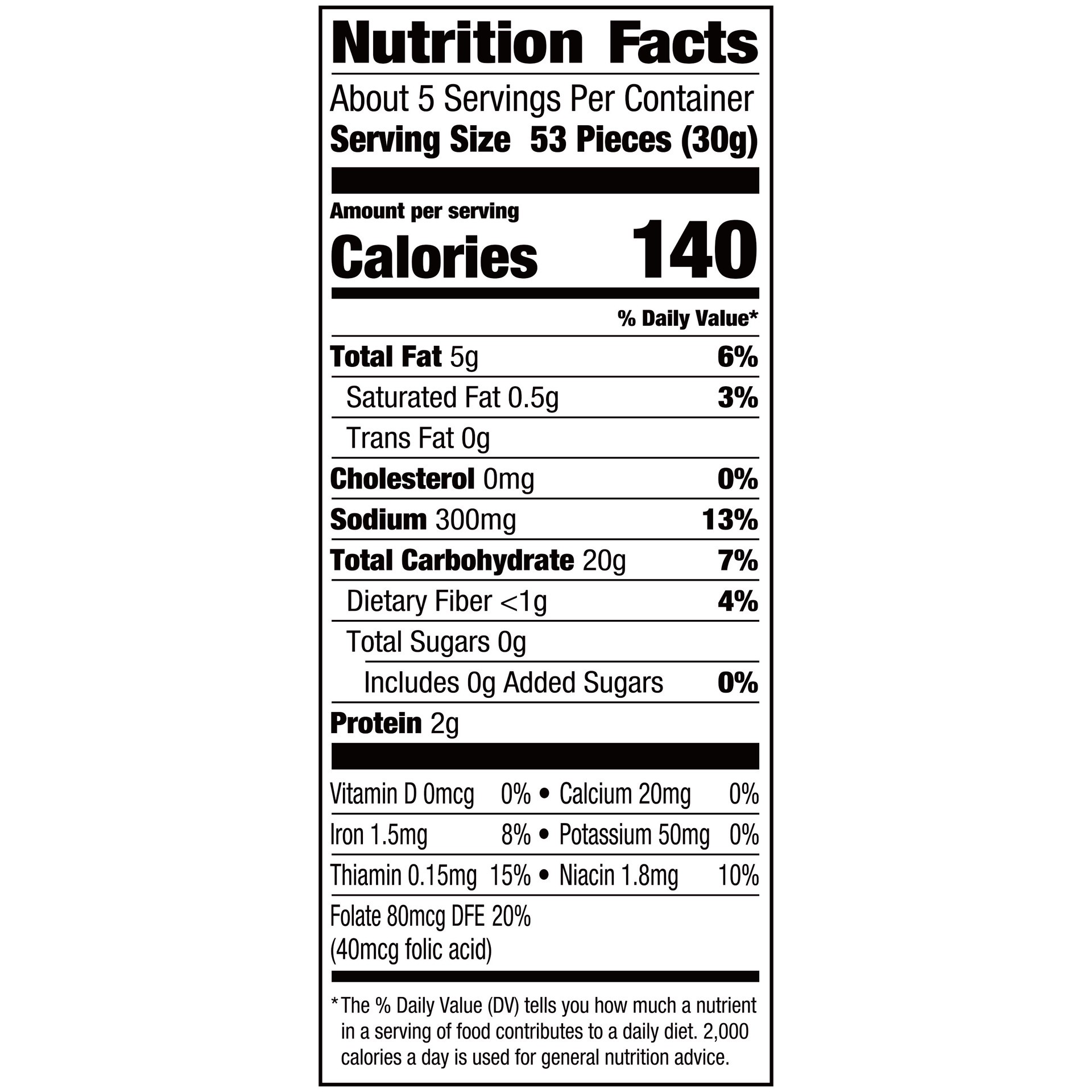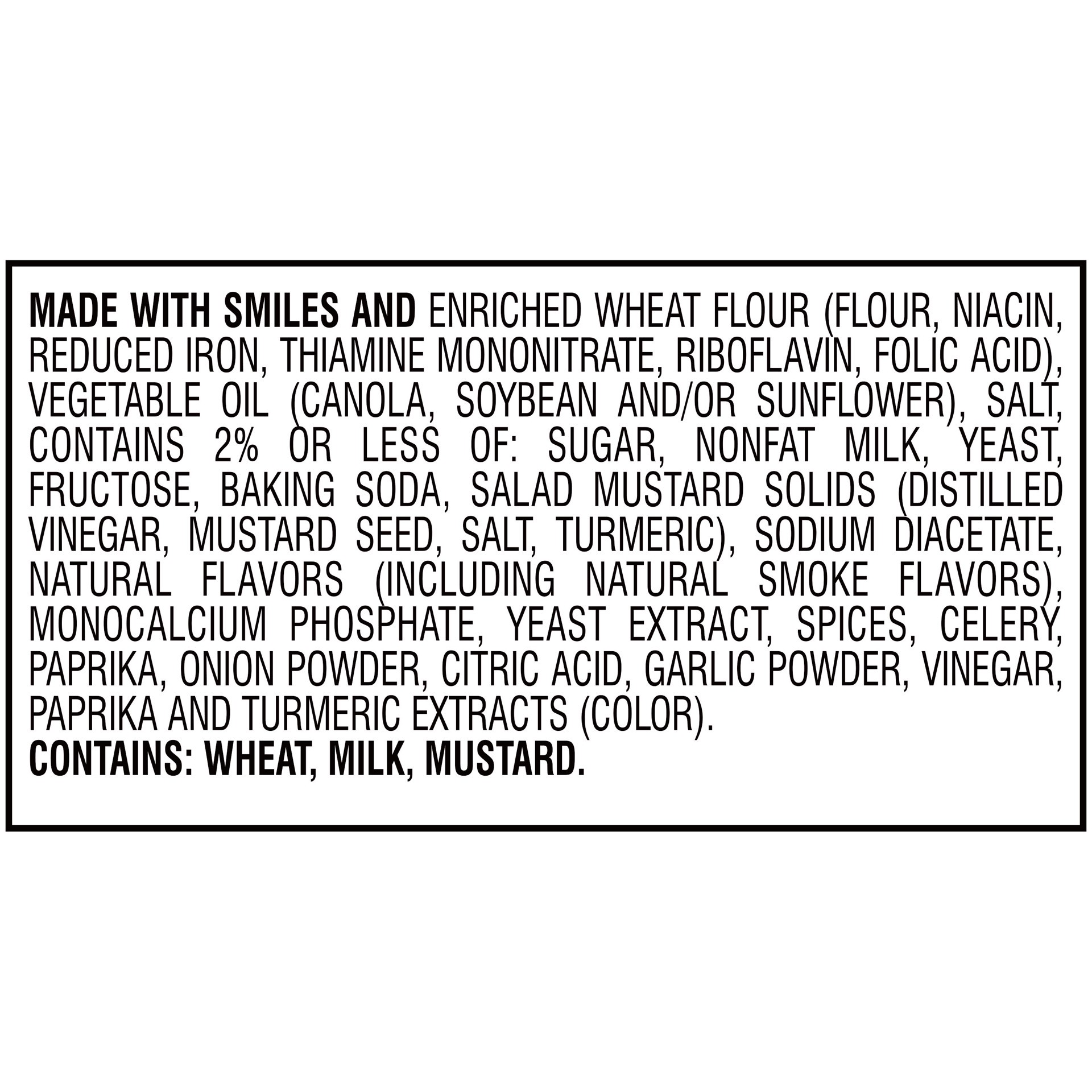 MADE WITH SMILES AND ENRICHED WHEAT FLOUR (FLOUR, NIACIN, REDUCED IRON, THIAMINE MONONITRATE, RIBOFLAVIN, FOLIC ACID), VEGETABLE OIL (CANOLA, SOYBEAN AND/OR SUNFLOWER), SALT, CONTAINS 2% OR LESS OF: S…